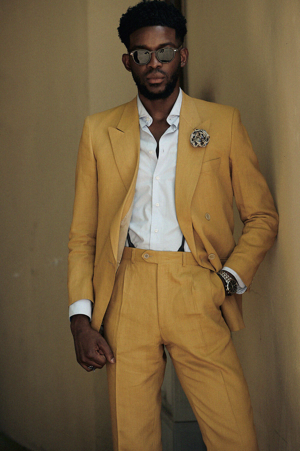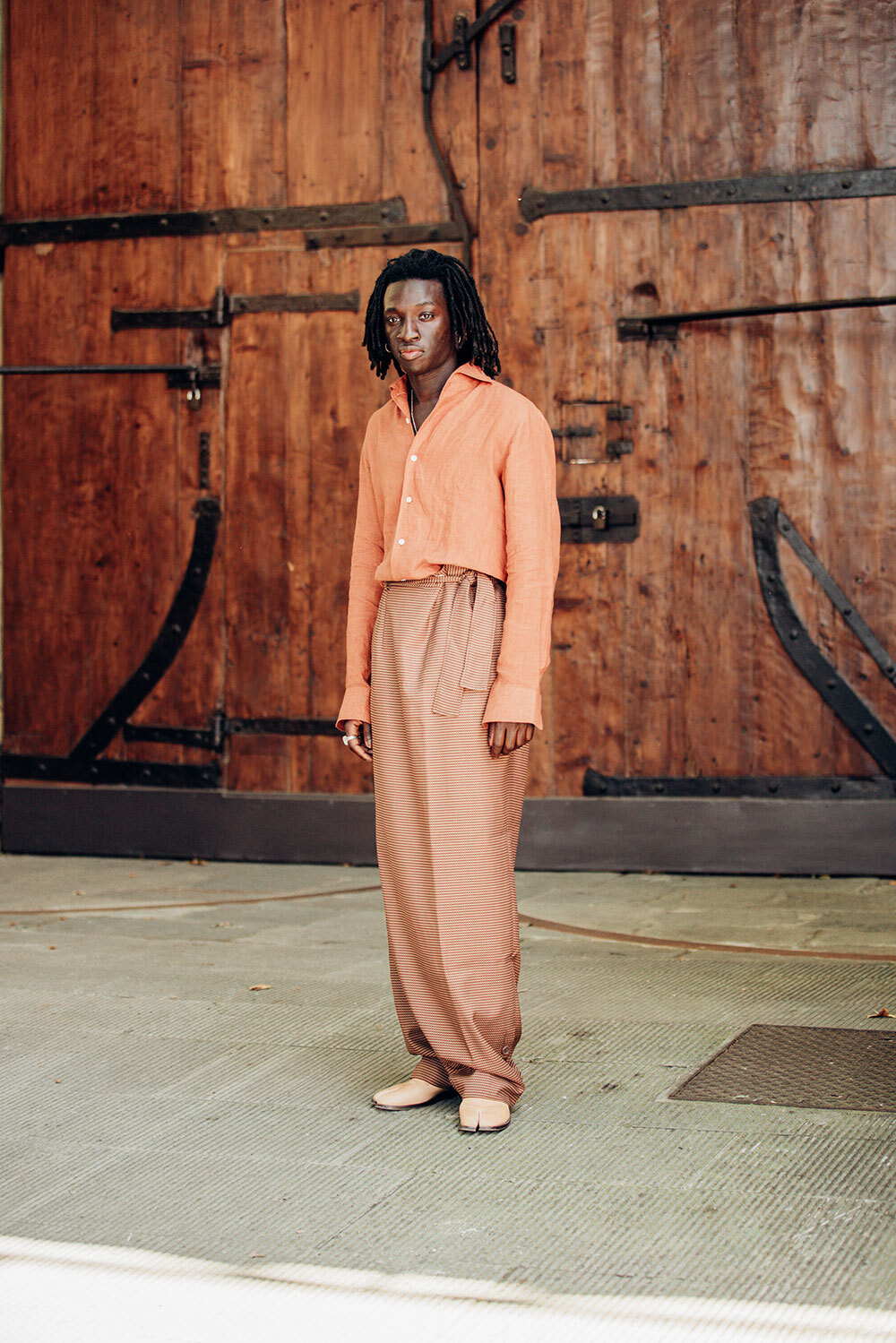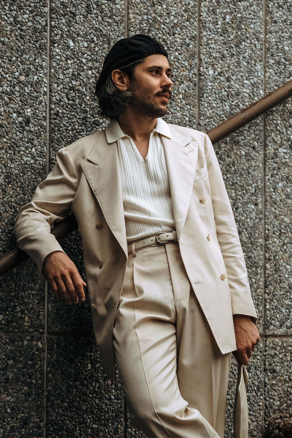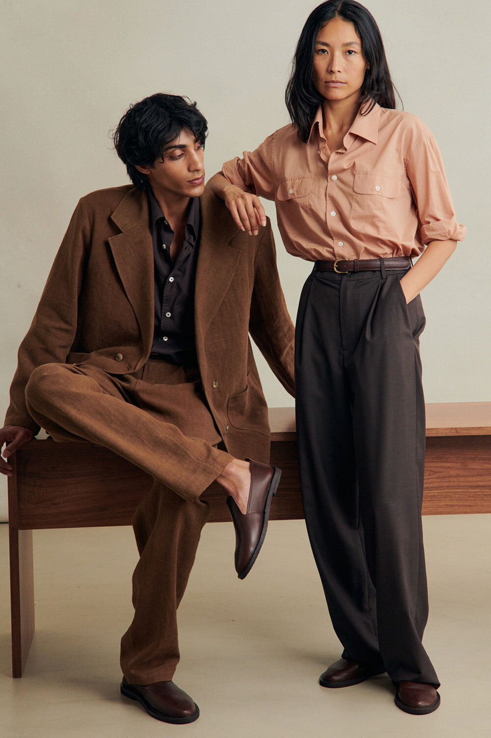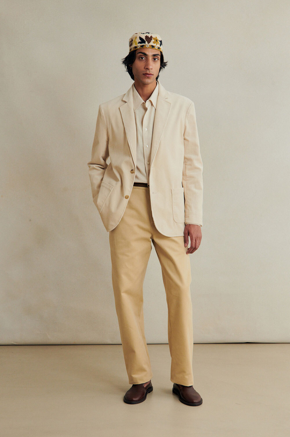 Французский бренд De Bonne Facture известен своим тонким стилизмом. В этот раз среди референсов дизайнера Деборы Ситбон Ньюберг оказались одновременно образы Леонарда Коэна 1980-х и «Книга слов» казахского просветителя Абая. Ее идея состояла в том, чтобы показать, как можно одеваться элегантно, не отказываясь от своих культурных корней. Так доппа (тюбетейка) из Центральной Азии сочетается с привычными для бренда моделями в духе расслабленной классики. De Bonne Facture также выпускает часть мужских моделей в уменьшенных размерах – специально для женщин.