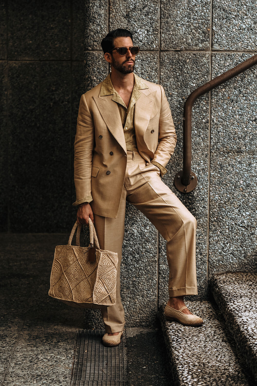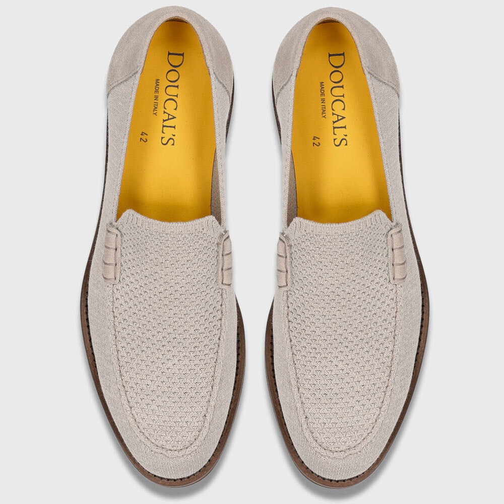 Бренды аксессуаров также отличились смелым подходом к классике. Обувная марка Doucal’s представила коллекцию, вдохновленную ландшафтами так называемых «итальянских пустынь». О песке и голубом горизонте напоминают цвета главной новинки коллекции – лоферов Potenza, выполненных из льняного трикотажа и замши. Doucal’s хорошо известен своей легкой обувью, но эта модель, возможно, задает новую планку. Сверхлегкая подошва в сочетании с воздухопроницаемым материалом верха делает ее особенно комфортной и незаменимой – как для знойной местности, так и для жаркого города.