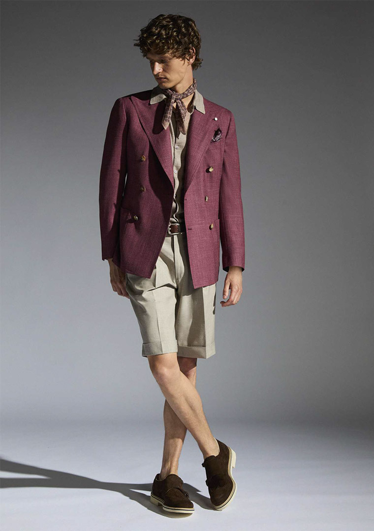 Марка Luigi Bianchi из Мантуи – что ни на есть костюмная и историческая (существует с 1911 года), но она также стремится представить классику в ином стилистическом регистре. В этом свете двубортный пиджак в сочетании с шортами или брюками-карго стоит воспринимать как вариант нормы.