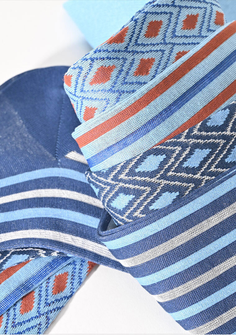 Носочный бренд Bresciani назвал коллекцию Solaris. Вдохновением послужила энергия света и богатство цветового спектра. В нем оттенки неба и васильков дополнены теплыми вкраплениями меда и апельсина. Классические полоски преобразованы в многослойные графические композиции. Всего в коллекции представлено 60 моделей в 1000 цветовых вариаций.