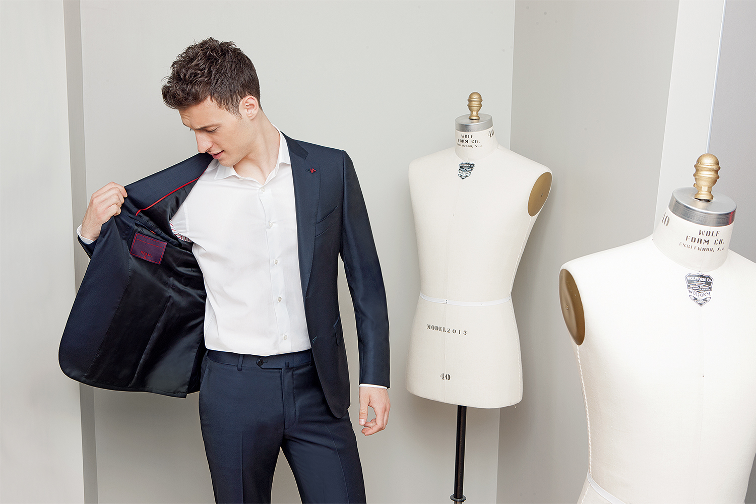 В рамках Su Misura портные Isaia предлагают семь базовых моделей, 2000 вариантов актуальных тканей, а также снятие 50 мерок для каждого клиента. Есть у Isaia и услуга Bespoke – разработка портным персонального лекала для пошива костюма.