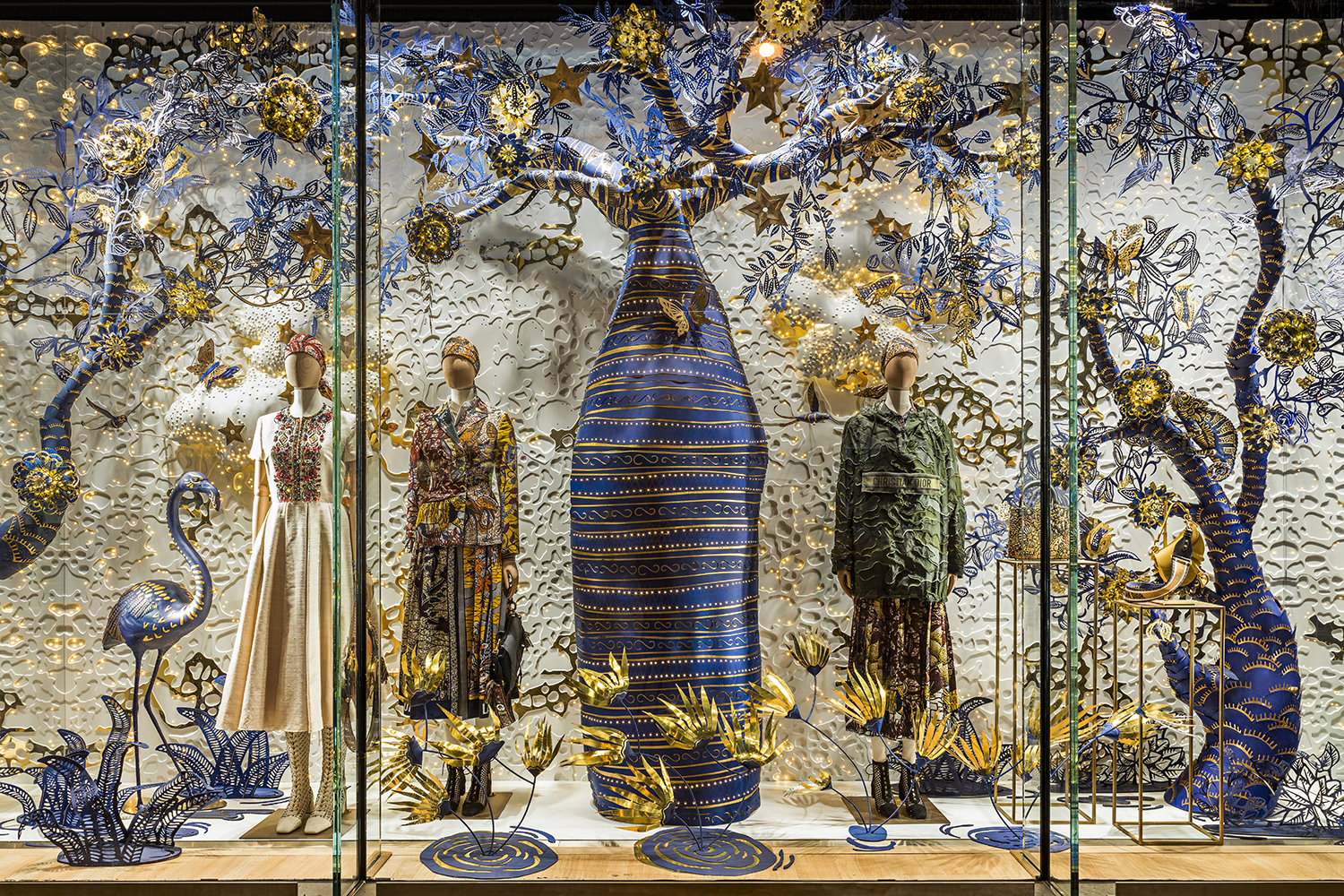 Витрины бутика Dior в Париже на Елисейских полях вдохновлены образами круизной коллекции 2020 и принтами toile de Jouy. Благодаря функции дополненной реальности Snapchat, проходя мимо, можно с помощью камеры анимировать отдельные элементы оформления