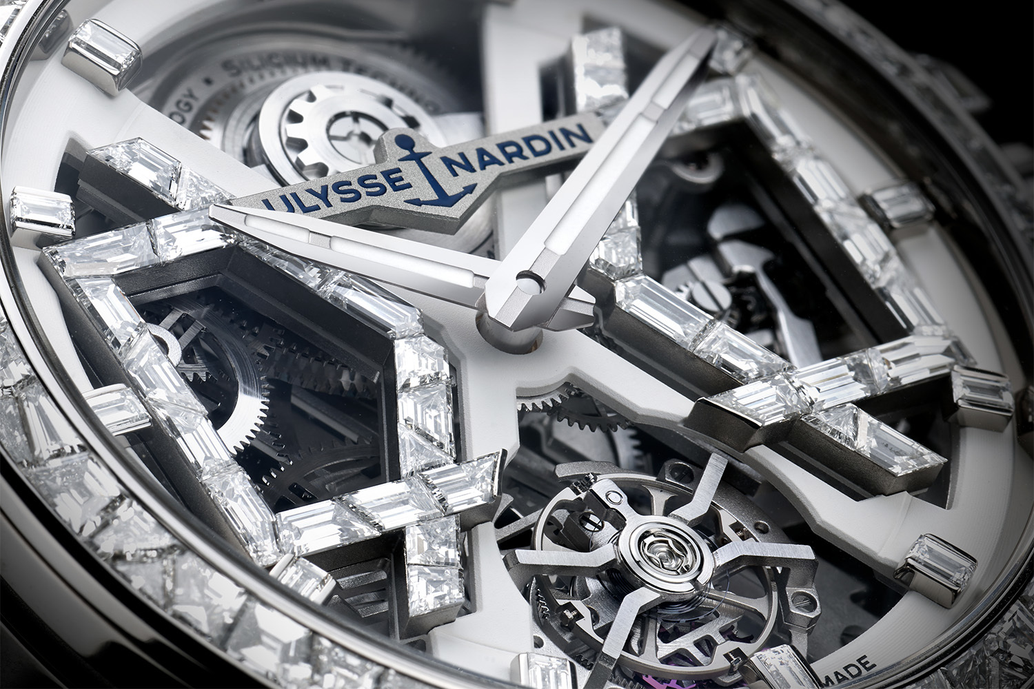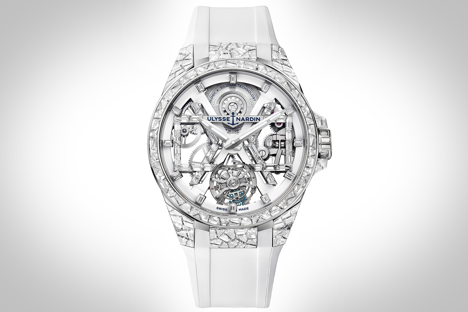 Новая модель Blast швейцарской мануфактуры Ulysse Nardin пополнила в 2020 году ее коллекцию Skeleton X, и теперь вслед за несколькими вариациями для мужчин представлены женские ювелирные часы Sparkling Blast. Выпущены они в трех экземплярах в корпусе из белого золота с белым каучуковым ремешком и в корпусе из белого золота с темно-синим ремешком из кожи аллигатора