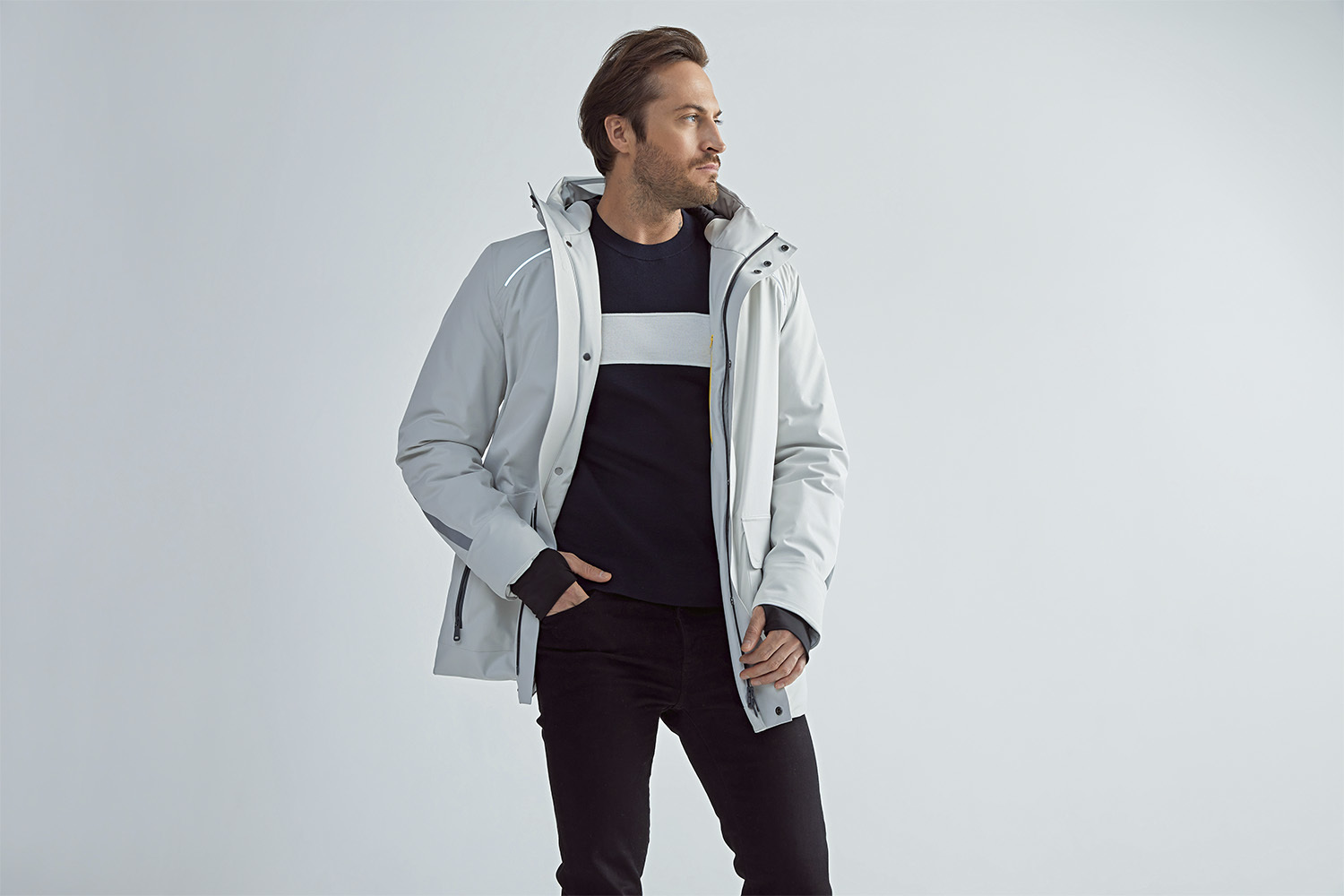 Итальянский бренд Geox славится обувными технологиями – достаточно вспомнить ботинки и кроссовки с запатентованной дышащей подошвой (Geox Respira). Однако это не единственная точка приложения сил: вот уже более 20 лет компания во главе со своим основателем Марио Моретти Полегато производит и одежду, причем последние годы активно продвигает именно это направление. Одежда у Geox, как и обувь, умная и технологичная. К новой куртке XLed прилагается специальное устройство, которое находится во внутреннем кармане. Его можно подключить по Bluetooth к смартфону или к Apple Watch. Светящееся Led-волокно расположено на уровне плеч и на спине. Благодаря технологии Amphibiox куртка защищена от дождя и от ветра и дышит. В осенне-зимней коллекции Geox дизайнеры решили позаботиться не только о комфорте, но и о хорошем настроении. И представили стеганые пуховики ярких цветов – желтые, красные, зеленые. Если станет совсем холодно, такие куртки можно надеть под теплый пуховик, например в сочетании с моделью Aerantis. Этот пуховик имеет динамическую систему вентиляции.