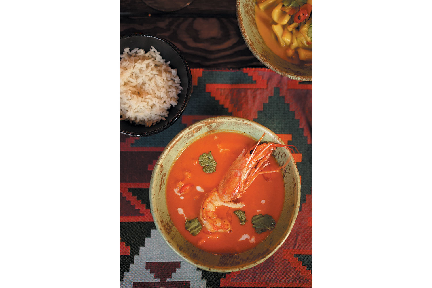 В Mapuche готовят горячие домашние блюда всей Латинской Америки. Иногда мама Ирмы дает поварам мастер-классы. По ее рецептам здесь готовят риссоли с креветками — мягчайшие горячие пирожки в хрустящей корочке. Дома нужно есть суп, и в Mapuche обязательно закажите мокеку с лангустином, напоминающую тайский том кха, или желтый карри с кальмаром. К этим блюдам подают особенный рис, который варят в кокосовом молоке, от чего он становится особенно нежным, приобретает сладковатый аромат, но не теряет рассыпчатости. Удивительной мягкости осьминога здесь подают с бульоном из трав, томатов, оливок каламата. Получается почти домашнее рагу, согревающее и очень вкусное.