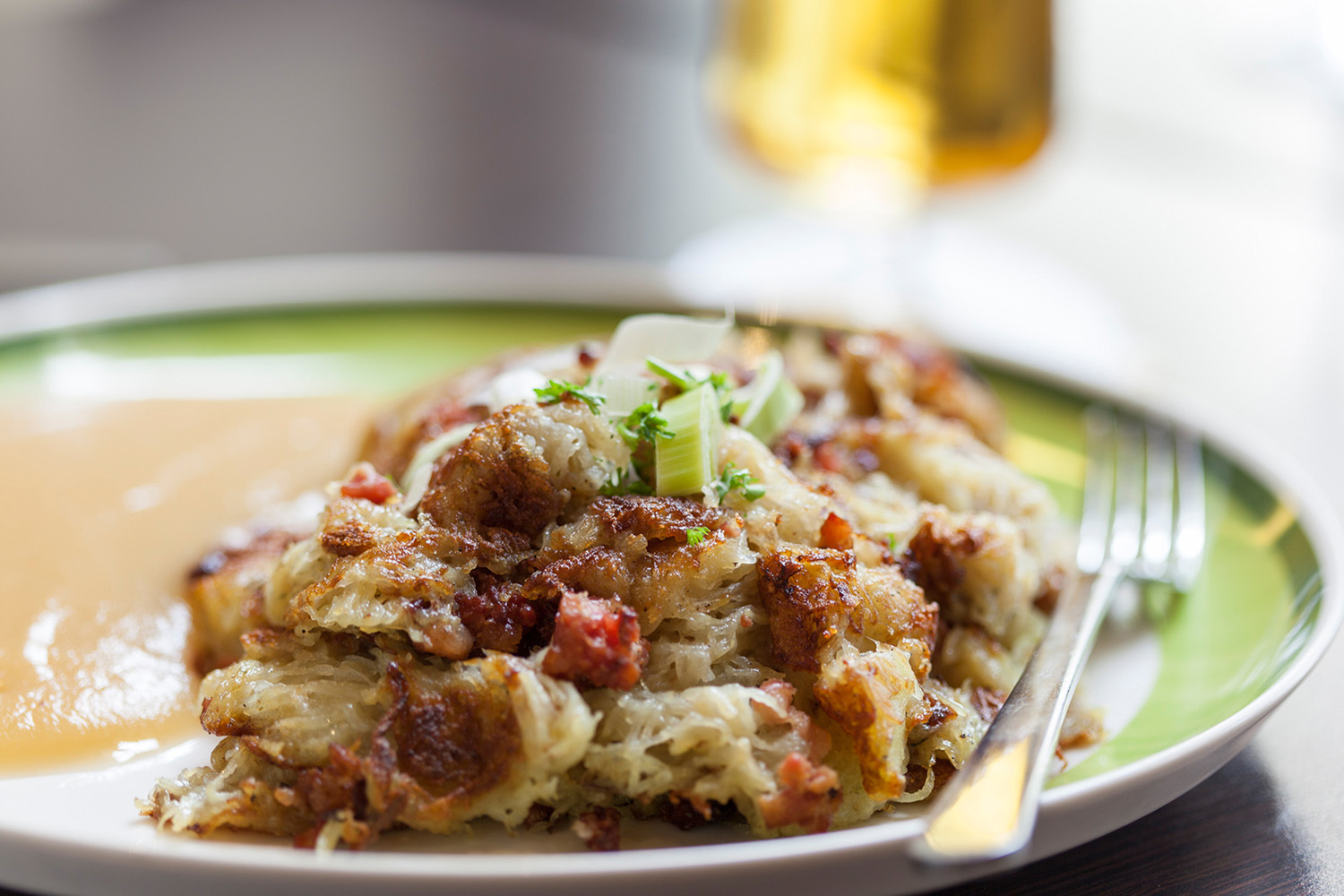 А вот на другом конце страны, на юго-западе Германии, широко распространено сытное блюдо с забавным названием Dibbelabbes (Dibbe в переводе с немецкого – «горшок»). Рецепт может варьироваться в зависимости от региона, но одна из наиболее популярных, классических версий принадлежит Саару. Там в него кладут картошку, лук, вяленое мясо и яйца, а при сервировке добавляют яблочное пюре: сладкие нотки, по мнению местных кулинаров, выгодно оттеняют вкус.