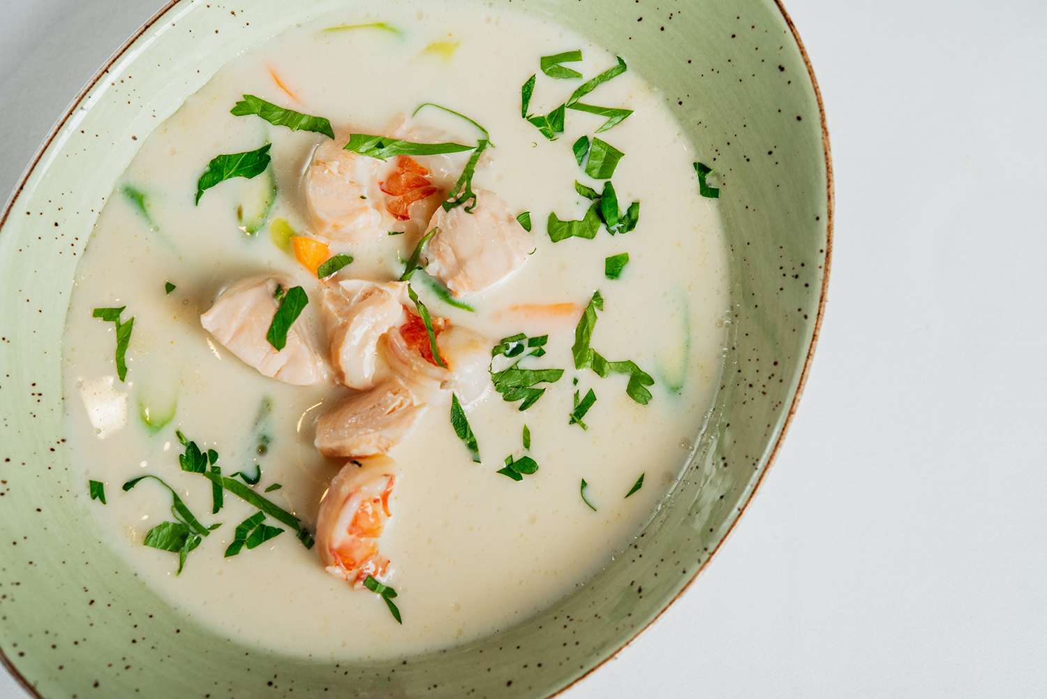 8. Сырный суп с лососем и креветками от бренд-шефа ресторана «Магадан» Сергея Векшина