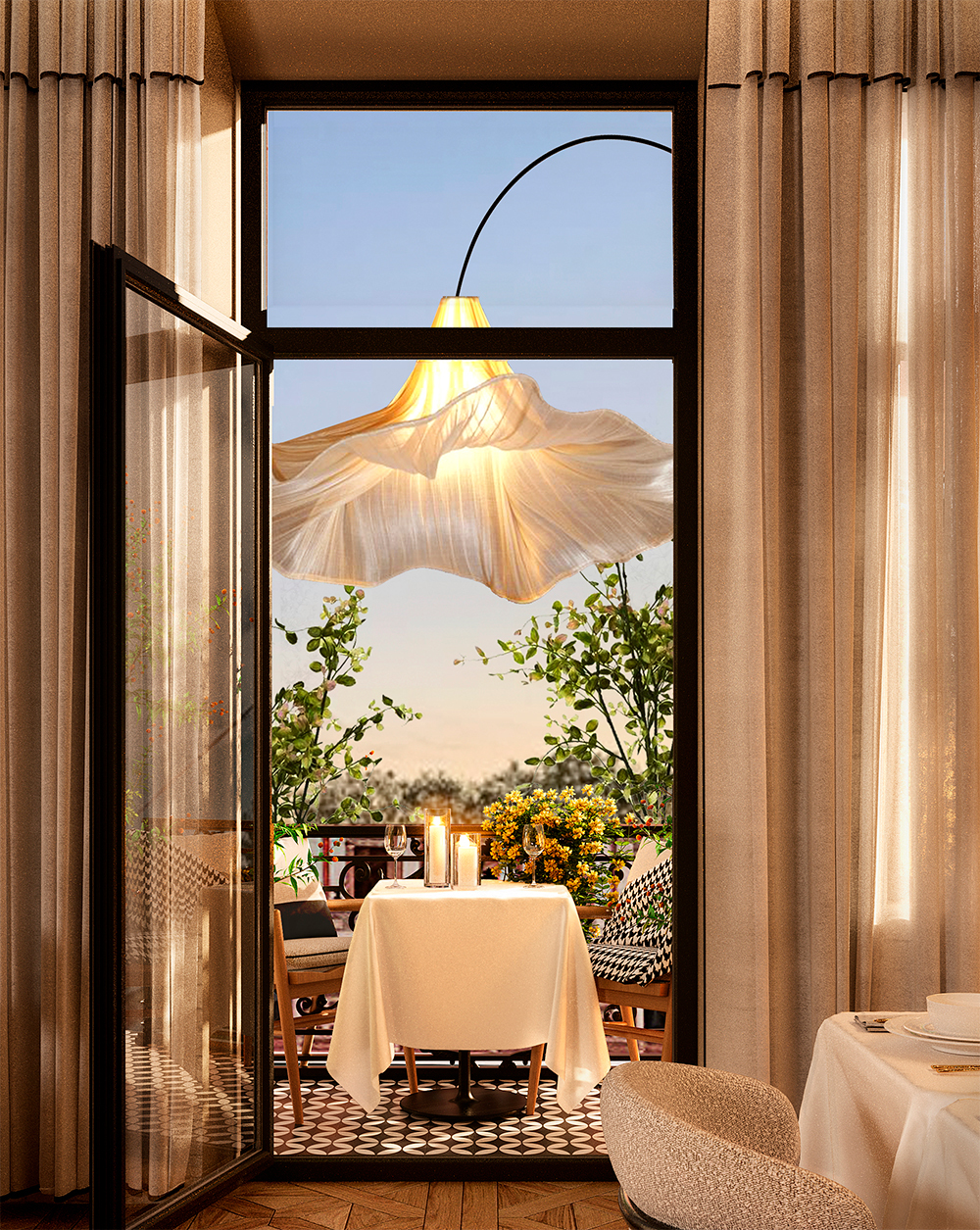 И не без причин – на завтрак гостям предлагают рисовую кашу с ромашкой и юзу, зеленый омлет с рукколой и пармезаном и тыквенный флан, а в основном меню есть такие удивительные позиции, как паштет из брокколи с кедровым орехом или вяленая свекла с кремом из сливочного сыра и эстрагона, дополненная карамелизированными орехами пекан. Но не овощами едиными – среди горячих блюд найдутся жареные гребешки с соусом из фуа-гра, краб со сморчками и картофельным пюре или террин из томленого ягненка с ризотто из полбы в сочетании с трюфельным соусом.