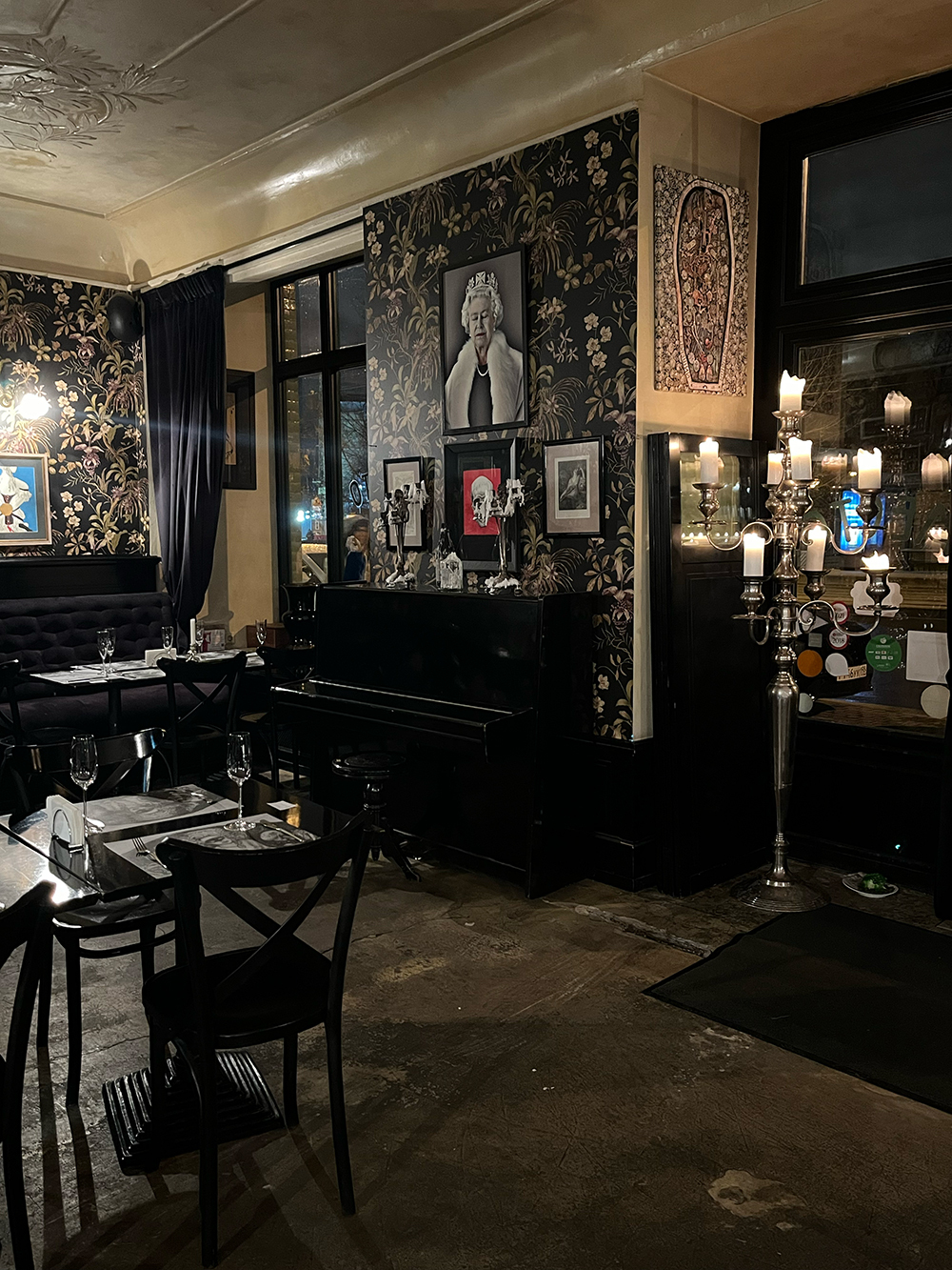 Любительница оперы и англоман Екатерина Бокучава лет пятнадцать назад открыла стильное гастрокафе с атмосферой гостиной старого английского особняка, где театрально горят свечи, а на картинах изображены черепа. Чисто питерская атмосфера с британской самоиронией и любовь всей творческой богемы обеих столиц – если в БДТ гастроли, то ищите главных звезд здесь, под портретом Елизаветы Второй.