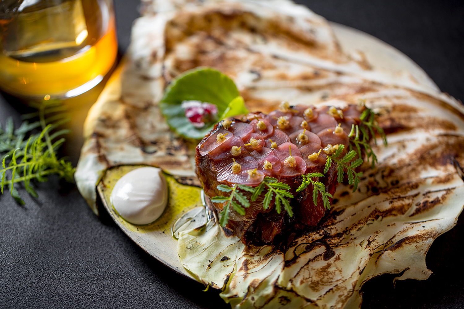 Шеф-повар ресторана White Rabbit Владимир Мухин, амбассадор Electrolux – автор целой коллекции рецептов в концепции sustainable eating. При готовке, считает он, надо руководствоваться принципом zero waste – использовать продукт целиком, включая очистки. На фото – «люля-кебаб» из капустной кочерыжки. Берется капустная кочерыжка, режется вдоль. Затем ее кладут в масло бер-нуазет (сначала масло доводят до кипения, а затем делают средний огонь, пока не выйдет пена и масло не приобретет ореховый цвет и не станет прозрачным). Далее кочерыжку готовят в духовом шкафу в режиме сувид 4 часа, чтобы сохранить витамины и получить нежную консистенцию. Подают с мисо-кленовым сиропом (это мисо-паста, смешанная с кленовым сиропом) и с мисо-сметаной (мисо-паста, смешанная со сметаной)