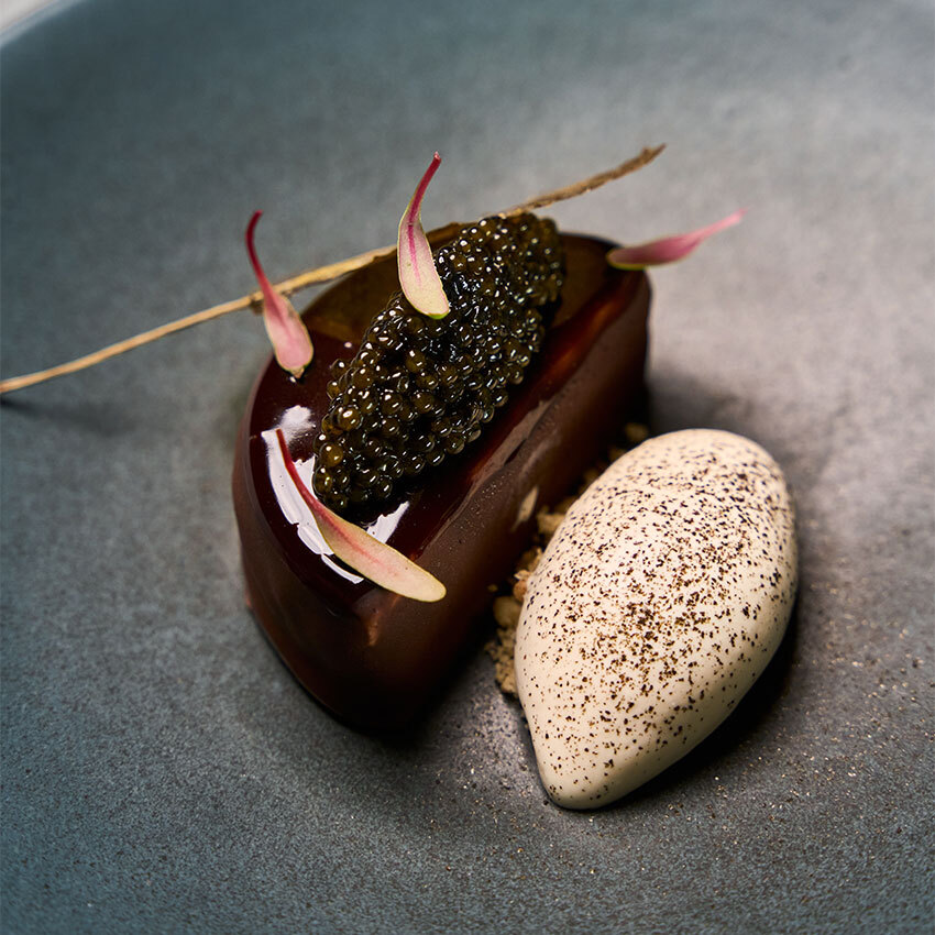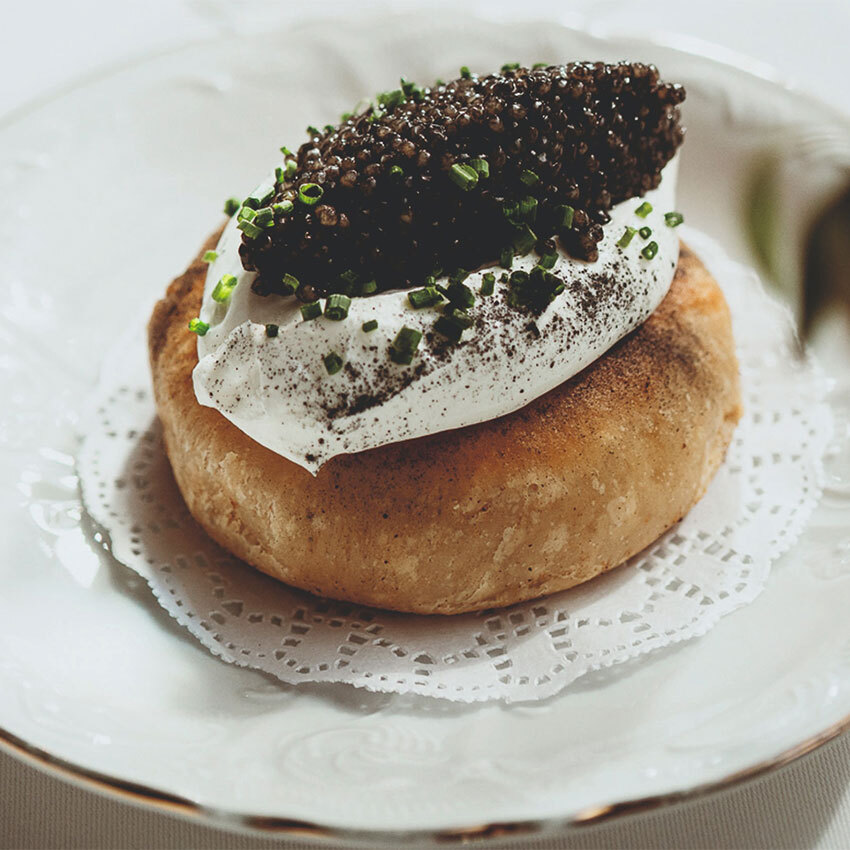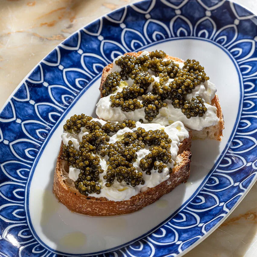 Брускетта с черной икрой и страчателлой в Ivanka (Москва)