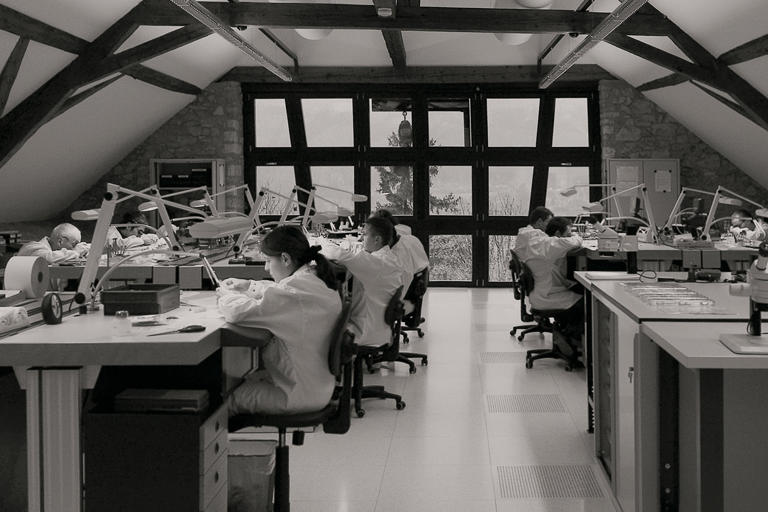 П.Р. Да, всего четыре человека, да и сама компания размещалась на 80 кв. м. Сегодня в Bovet работает 142 сотрудника и мы выпускаем 3000 часов в год, штаб-квартира и производственные мощности занимают площадь 70 000 кв. м. Подобных нет даже у некоторых брендов, производящих по 20 000 часов в год. Мы сами создаем циферблаты в пригороде Женевы в План-лез-Уат; делаем наши механизмы самостоятельно, включая волосковую пружину баланса на производстве Dimier 1733 в Тремблане, около Бьена; также наша компания является совладельцем производства корпусов; и, наконец, в замке Мотье, в долине Валь-де-Травер, мы собираем все наши часы воедино. Мы не производим только минутные репетиры – в этом вопросе есть более серьезные специалисты. А вот хронографы делать станем – у нас уже готов прототип, но мы не торопимся, думаю, это произойдет в 2020 году. Могу сказать, что сегодня у меня действительно сильнейшая команда наконец, идеальная, на мой взгляд.