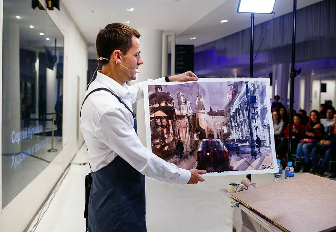 Недавно Сергей с коллегами провел мастер-класс по акварельной графике в режиме онлайн. «Это был уже не первый опыт, хотя не сказать, что я регулярно это делаю. У меня были записи мастер-классов, был случай, когда мы «вживую» делали это в «Зарядье» в поддержку выставки «Города в движении». Интересный опыт, мне нравится общаться с единомышленниками. Я считаю, что это история обмена. И я благодарен аудитории, которая принимает в нем участие. Для меня это так же важно, как и для моих слушателей».