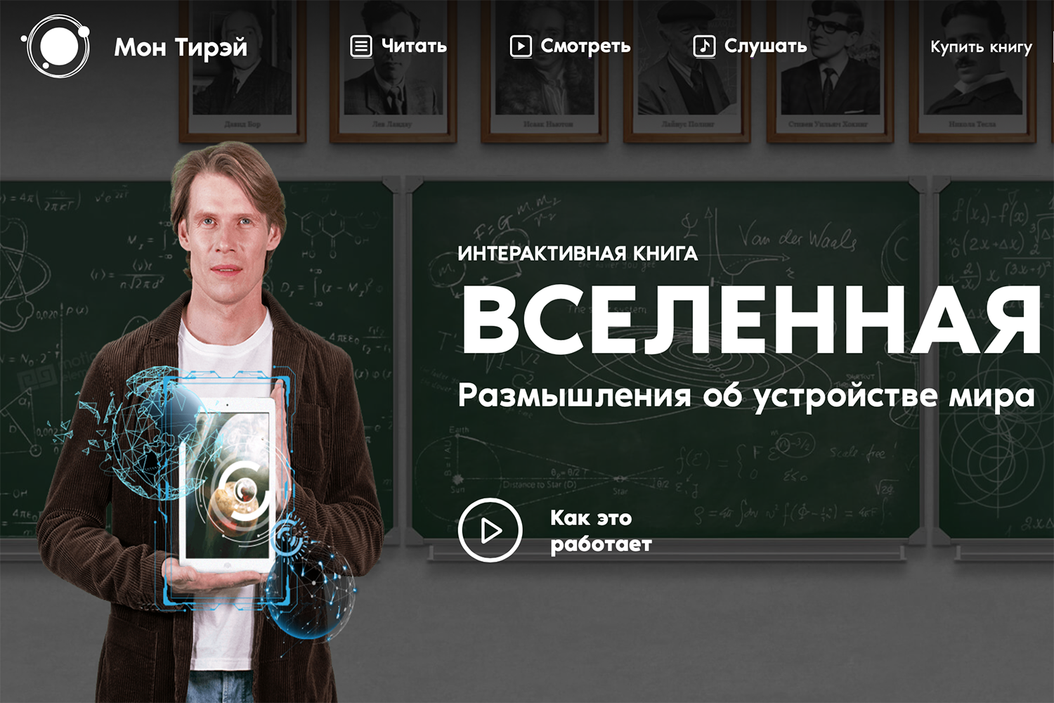 Сейчас интерактивный проект «Мон Тирэй» активно развивается на базе трилогии «Размышления об устройстве мира», которая включает в себя книги «Сотворение мира», «Вселенная» и «Человек». Изучать космологию можно через сайт или мобильное приложение, читая книги с уникальным фото- и видеоконтентом, слушая подкасты или смотря новые серии научно-популярного сериала (отснято уже 14 короткометражных фильмов).