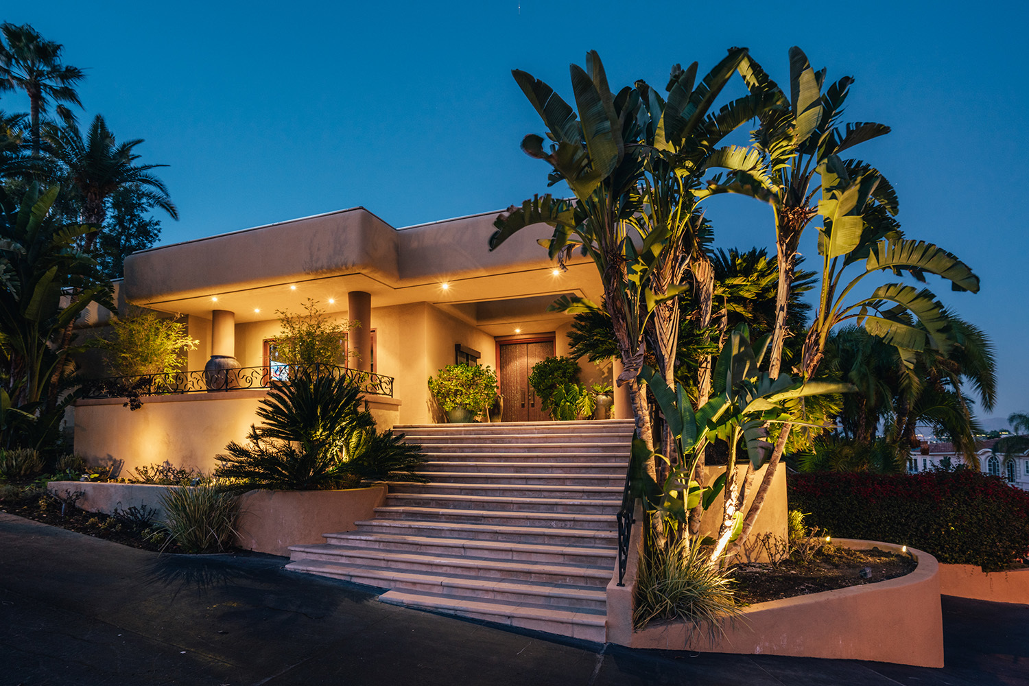 Расположившийся на холме с панорамным видом на город, дом был построен в 1987 году в качестве резиденции для застройщика местечка Виста-Пойнт – разумеется, со строгим соблюдением качества постройки и тщательным выбором материалов. Проект уникален: несколько этажей на разных уровнях окружают находящийся в центре большой атриум, где располагается пруд с карпами в тени многочисленных пальм. Благодаря выдвижной стеклянной крыше над атриумом во всех помещениях царит солнечный свет и всегда можно ощутить свежий ветерок, дующий со стороны холмов.