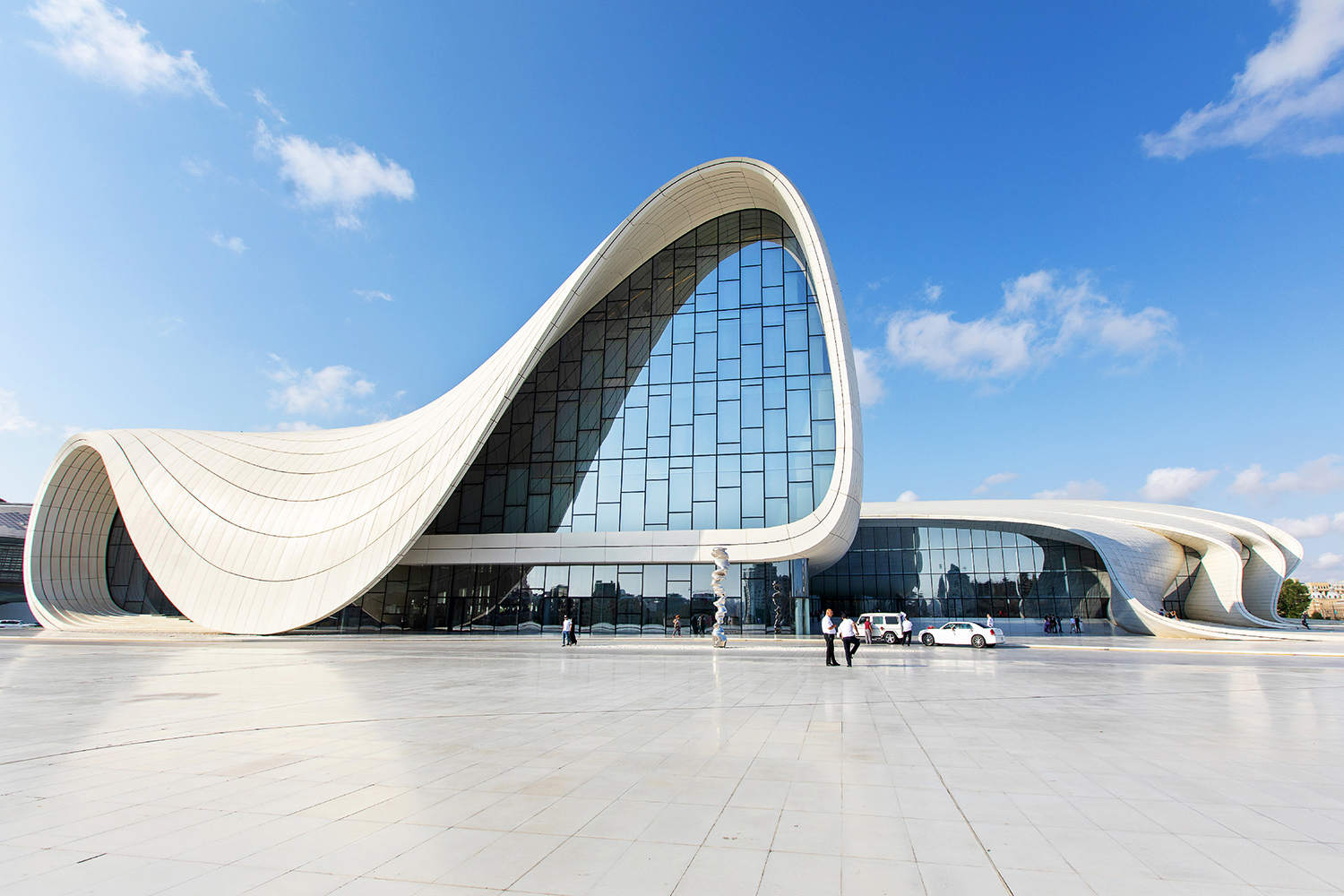 В нем Заха Хадид учла особенность рельефа и вписала здание в отвесный склон, обыграв перепады высот. В результате сооружение воспринимается как часть окружающего пейзажа. Здание, вдохновленное исламской архитектурой, отсылает и к модернизму с его тягой к космосу – отсюда его динамизм, тягучесть форм и устремленность ввысь. Культурный центр Гейдара Алиева построен на месте бывшего машиностроительного завода и символизирует новую эпоху в жизни страны.