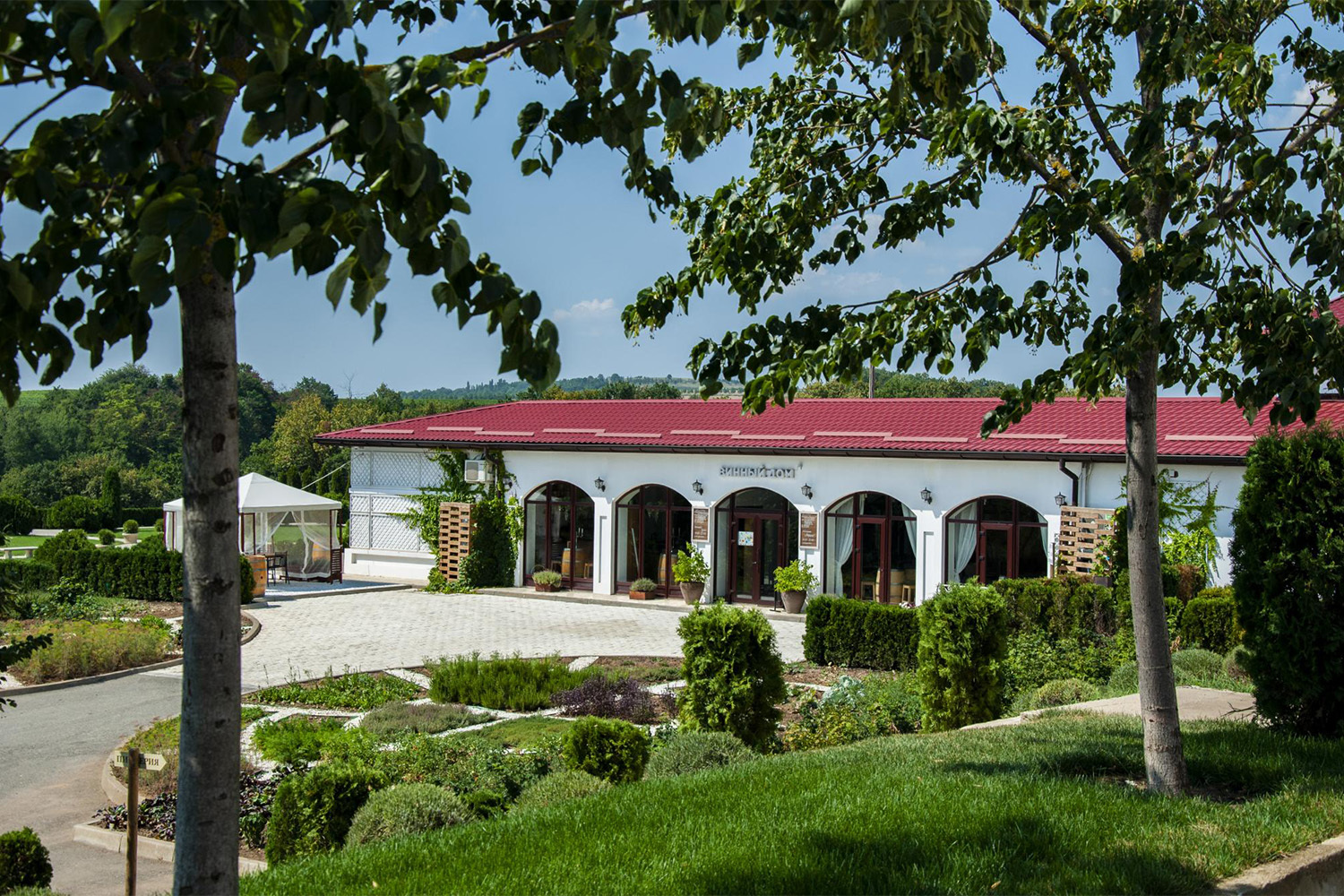 ...Простой прямоугольный объект возвышается над Анапской долиной. Огромные окна и элементы из кортеновской стали, бетон лицевой и отделочный. Винодельня похожа на космический объект, построенный инопланетянами. В центре конструкции – внутренний садик, посреди которого высится канадский дуб, ставший символом хозяйства. И глядя на него, вдруг захотелось вернуться сюда в ноябре, чтобы увидеть его ярко-красным.