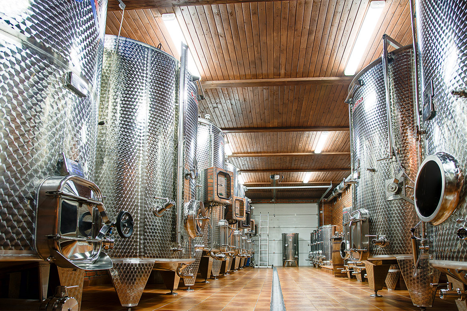 Под зданием оборудованы подвалы площадью 3000 кв. м. Здесь будет проходить выдержка тихих вин, ремюаж и брожение игристых вин, которые создаются в «Поместье Голубицкое» исключительно классическим методом шампанизации и выдерживаются на осадке не менее девяти месяцев.
