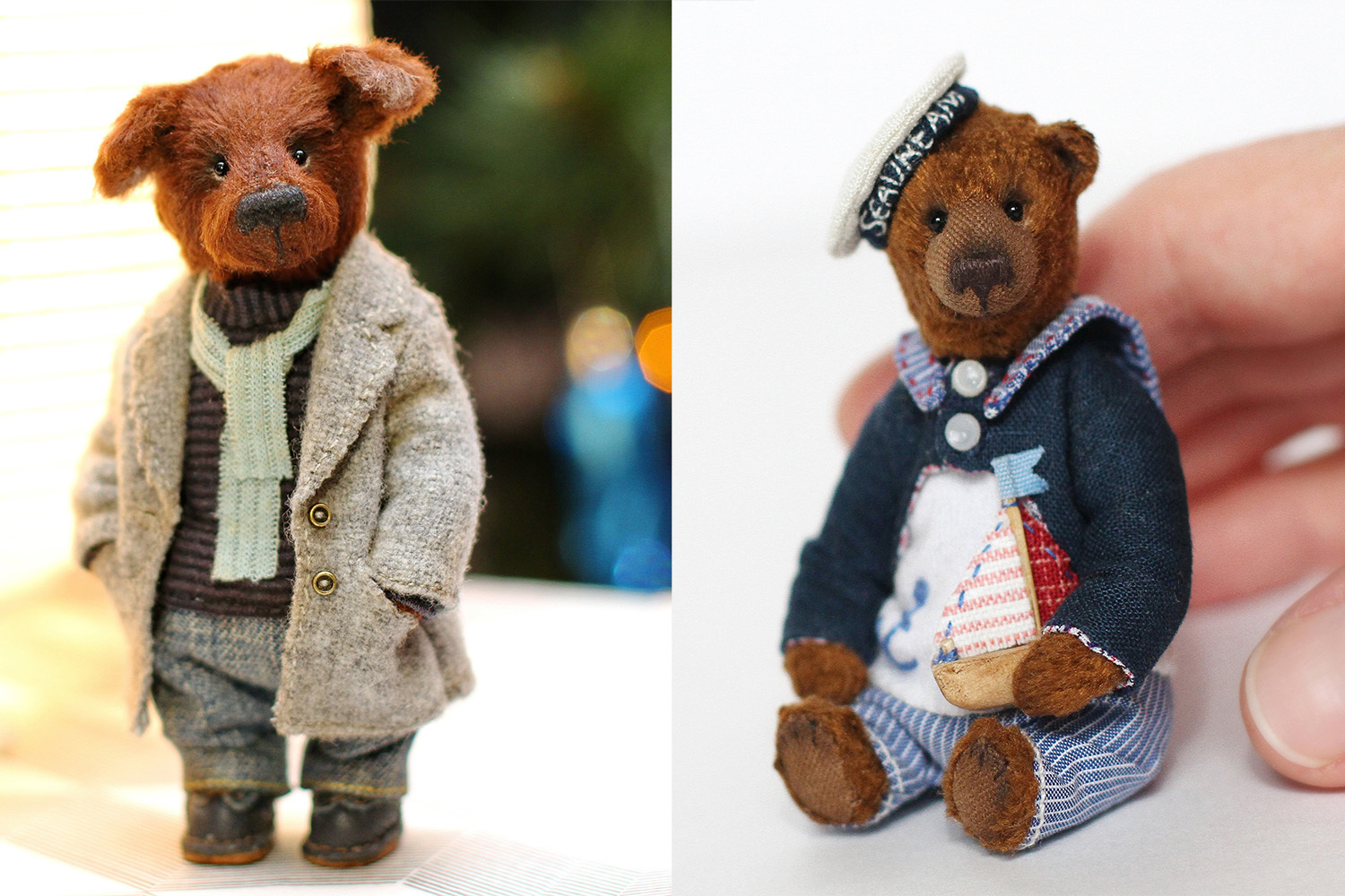 Первой награде, полученной в номинации «Миниатюрный мишка в одежде», особенно радовался сын Ольги, приложивший руку в созданию игрушки. «Для этого мишки, который всего 8 см в высоту, я специально выстрогала из дерева кораблик, который он держит в лапках, – рассказывает Ольга. – Мой сын очень бережно и тщательно шлифовал наждачкой этот кораблик – и конечно, он был счастлив, что мы победили».