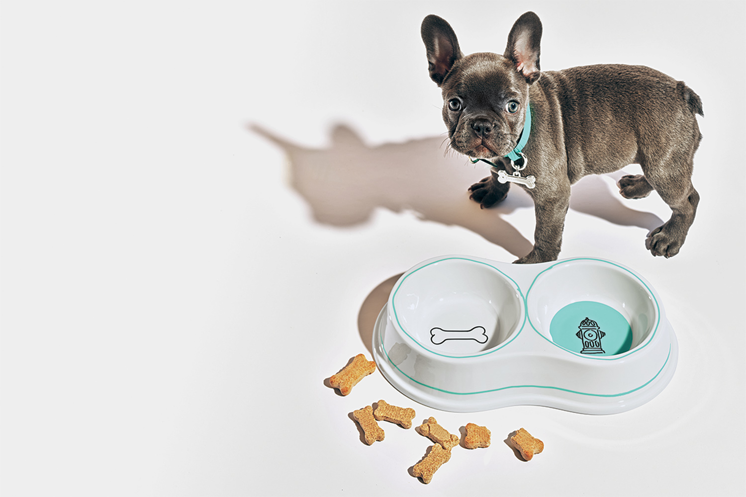 Дом Tiffany тоже не обошел стороной пушистых любимцев и выпускает подвески на ошейники, миски из костяного фарфора с надписями «dog» и «cat», поводки и даже специальную банку для лакомств.