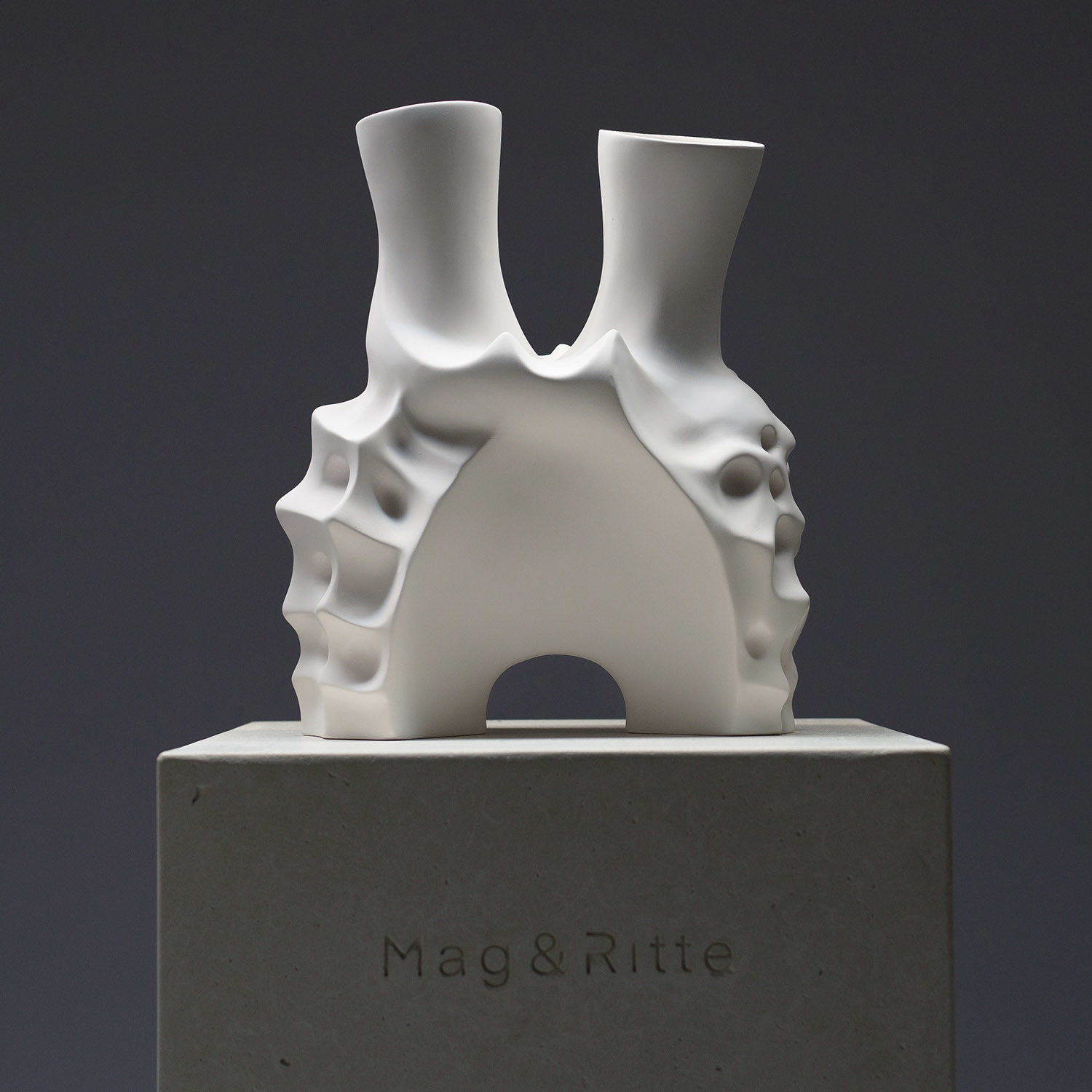 Дорогой вид вазам Mag&Ritte придает не только космический дизайн, но и сам материал, «Париан» — неглазурованный скульптурный фарфор с мраморной текстурой, который использовали еще в викторианской Англии.