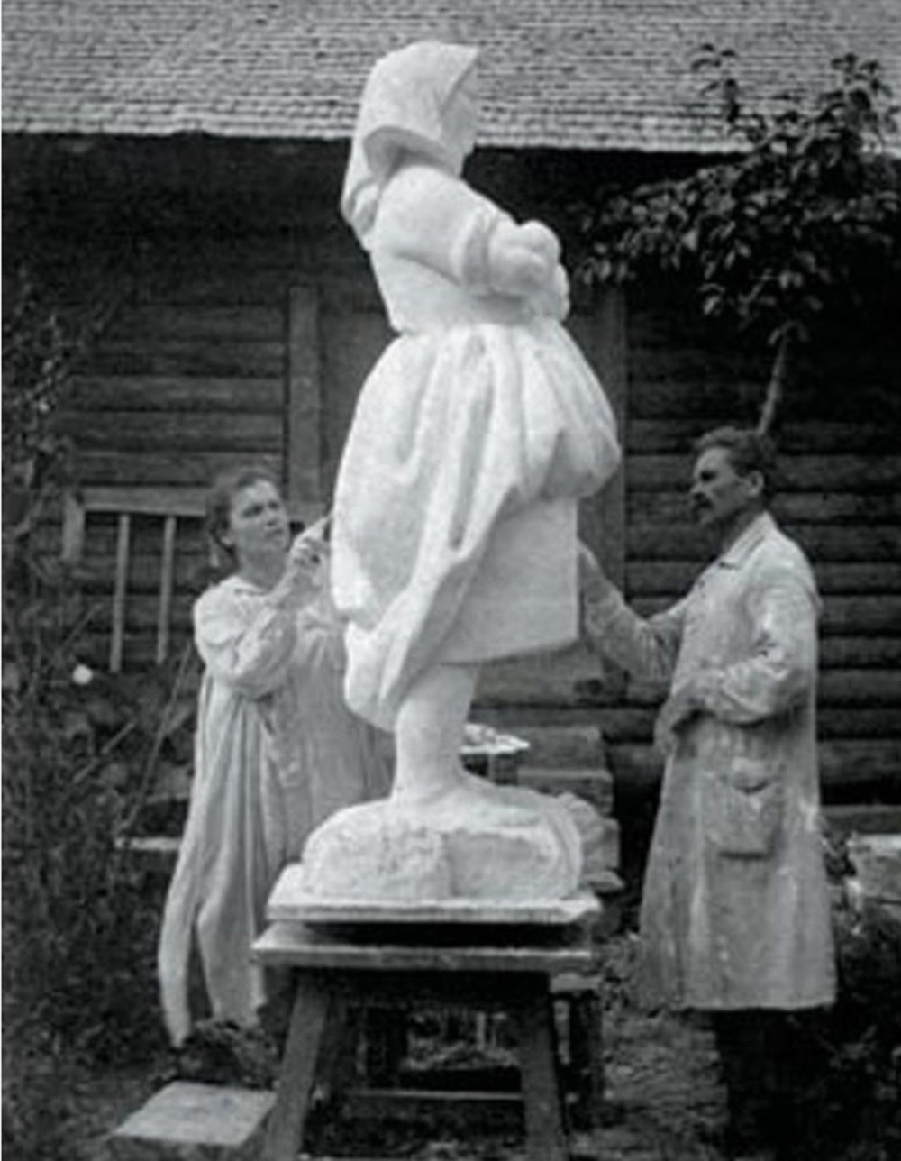 До 1930 – х годов не было реализовано ни одного памятника Мухиной. Случались удачи, но как большой скульптор Мухина состоялась, когда ей было почти пятьдесят. Я имею в виду выигранный конкурс на «Рабочего и колхозницу». Образ этой знаменитой работы рождался в Абрамцево, на академической даче, которую она получила.