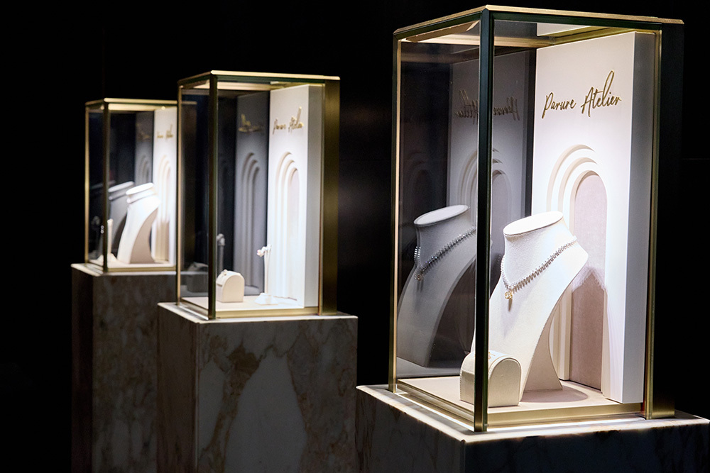 С первого дня работы Stella di Mosca в зоне его лобби сверкают витрины Parure Atelier, а в них – ювелирные украшения с бриллиантами и цветными драгоценными камнями: напомним, что они являются главной специализацией ювелирного Дома и более половины выпускаемых изделий производятся по частному заказу (слово Atelier в названии отнюдь не случайно).