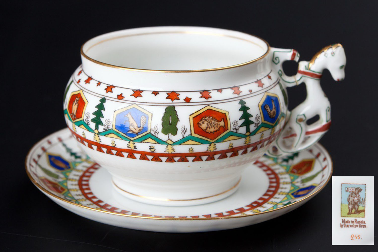 Один из самых редких предметов коллекции – чашка завода А.Д. Старцева, единственного на Дальнем Востоке. По стилистике и сюжетам фарфор этого завода отличается от продукции других русских производств: сказалось влияние восточных соседей. Даже в музеях практически нет изделий этого завода, отмечает Галина. Чайная пара торговой фирмы Василия Перлова, владельца известного чайного магазина на Мясницкой улице в Москве, интересна тем, что была изготовлена к открытию магазина в Париже, где Перлов тоже успешно торговал.