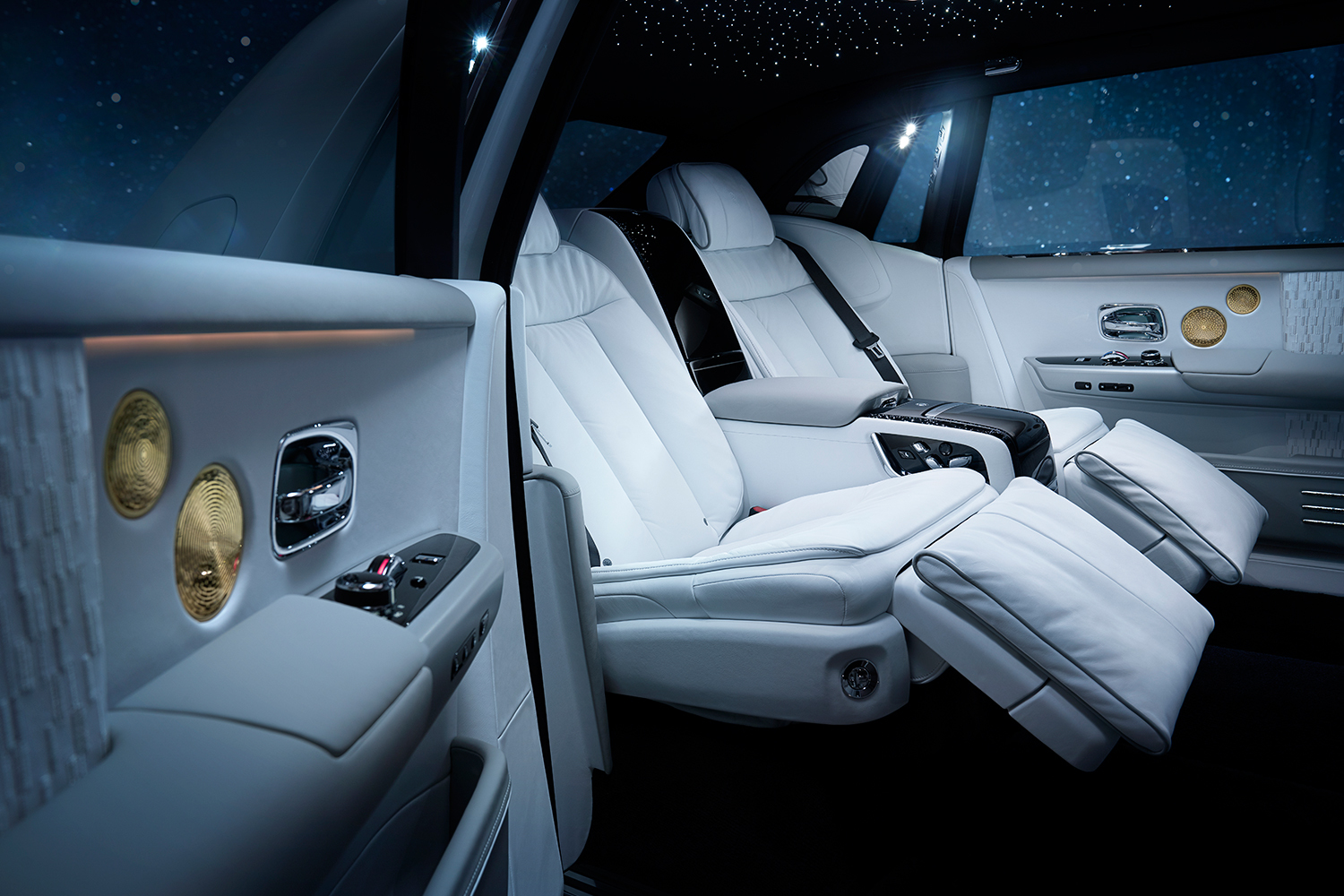 Так, в отделке использовались фрагменты настоящего метеорита, найденного в 1906 году в городе Кируна на севере Швеции. Кроме того, бело-серая гамма кожаного интерьера — это аллюзия на светлую и темную стороны Луны. А динамики Bespoke Audio, покрытые 24-каратным золотом, отсылают к космическому аппарату «Вояджер», который был запущен в 1977 году с грузом из золотых информационных пластинок. На них было записано послание для инопланетян: звуки, сцены из жизни, изображения культурных объектов на Земле.