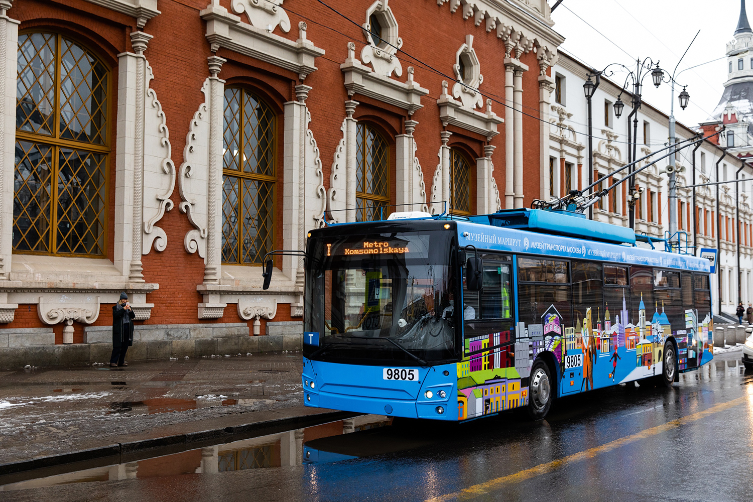 Музейный троллейбус ходит по маршруту от Комсомольской площади до Новорязанской улицы, проезжая площадь трех вокзалов и будущую площадку Музея транспорта Москвы.