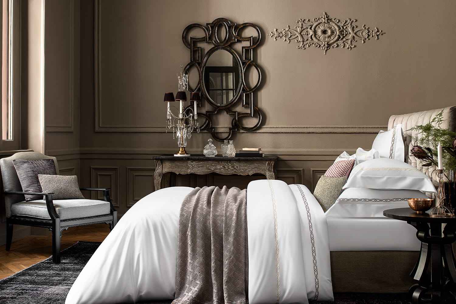 Кроме того, именитые мастера, которые шили постельное белье, оставляли на нем свои инициалы. «Старинная традиция нанесения монограмм на белье и личные вещи зародилась в знатных домах, статус которых предполагал индивидуальный пошив и персонификацию практически всех предметов домашнего обихода, – рассказывает Неллия Тогас. – Сегодня персонификация – это, во-первых, атрибут положения, который подчеркивает статус человека, а во-вторых, универсальная идея для памятного подарка. Нанесение монограмм и индивидуальная вышивка помогают создать эксклюзивную модель, которая не только идеально подойдет к интерьеру спальни, но и украсит его, подчеркнет изысканную атмосферу».