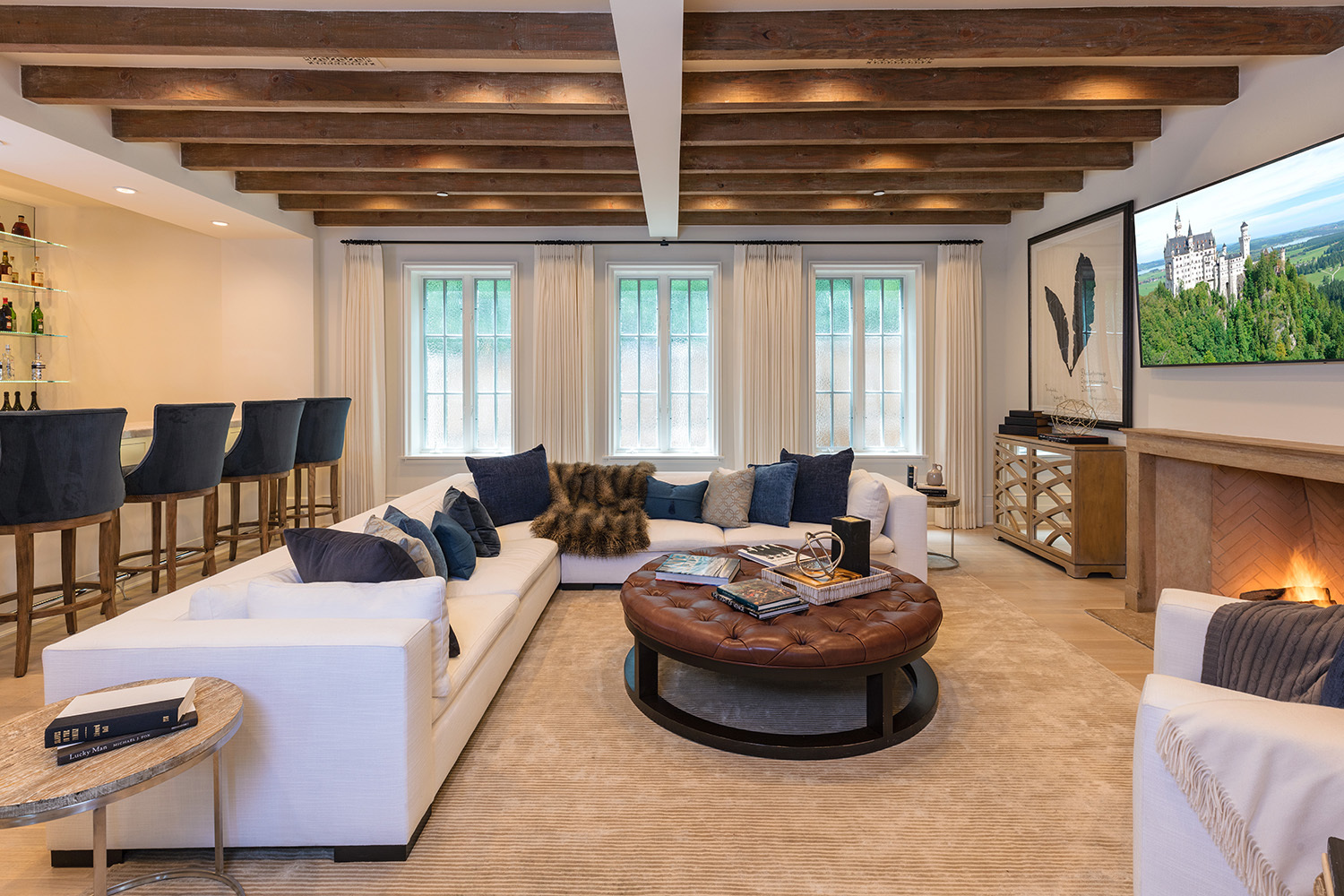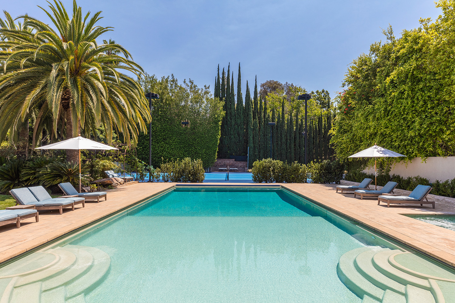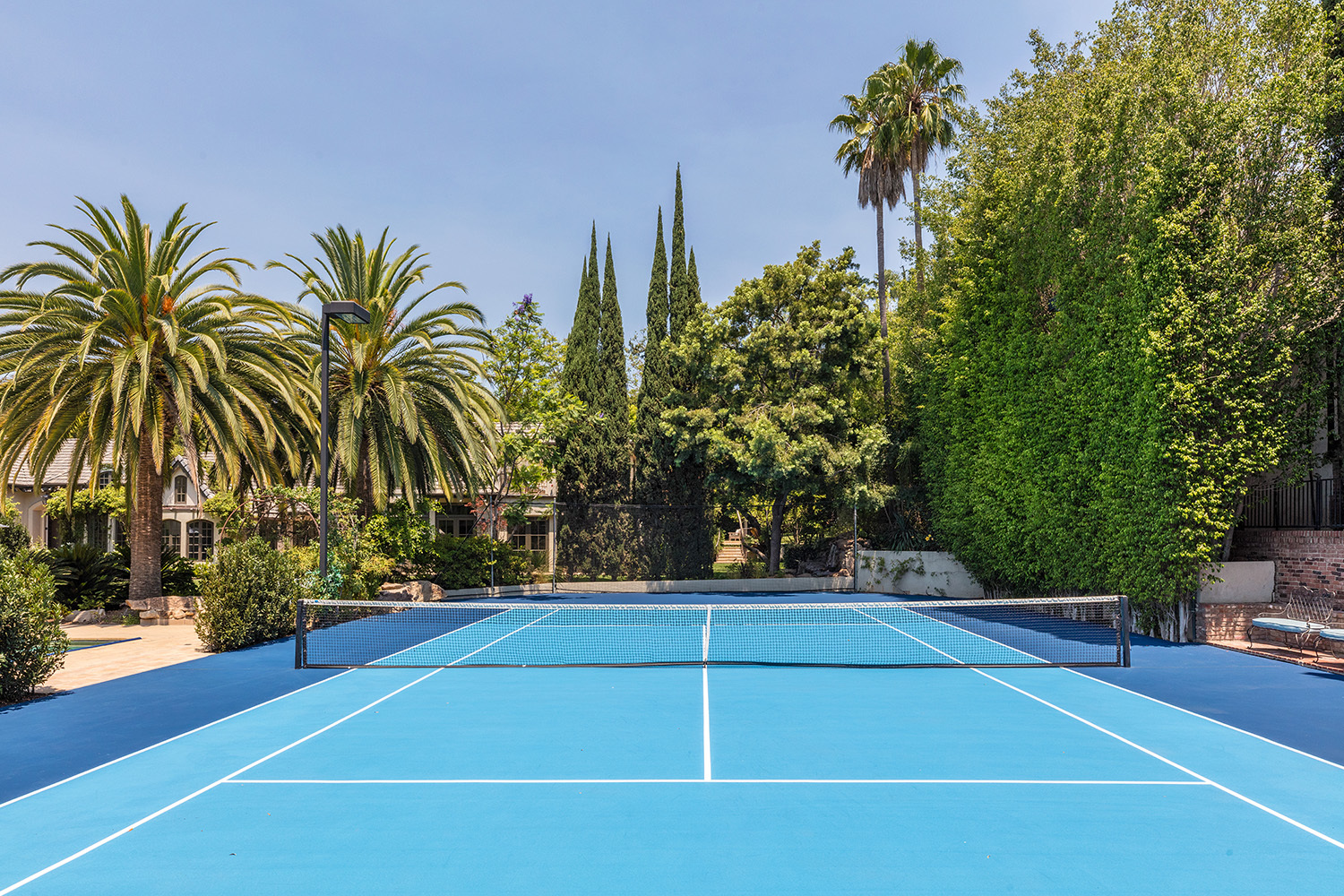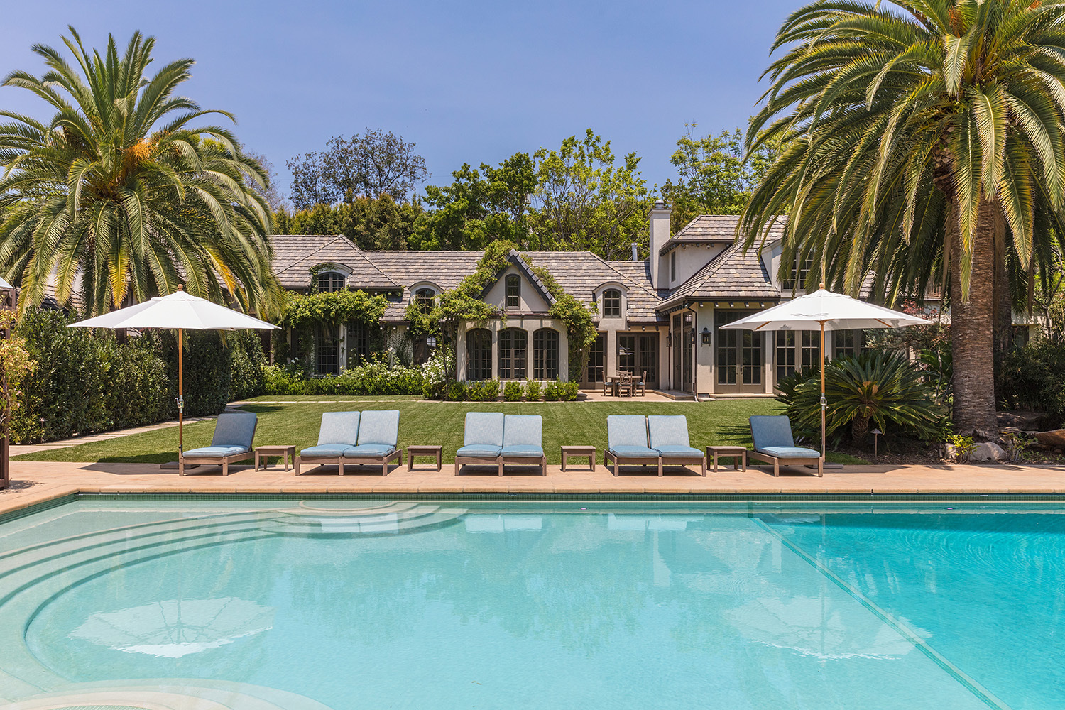 Построенный в 1968 году, дом площадью 538,84 м кв выполнен в нормандском стиле, в нем восемь спален и четырнадцать ванн, семь каминов, бар, отлично оборудованный фитнес-центр, прекрасно оснащенную кухню с собственным подсобным помещением для готовки, а также отдельные помещения для персонала. На территории поместья есть два отдельных гостевых дома, бассейн длиной в 18, 28 м, спа-центр и собственный теннисный корт.