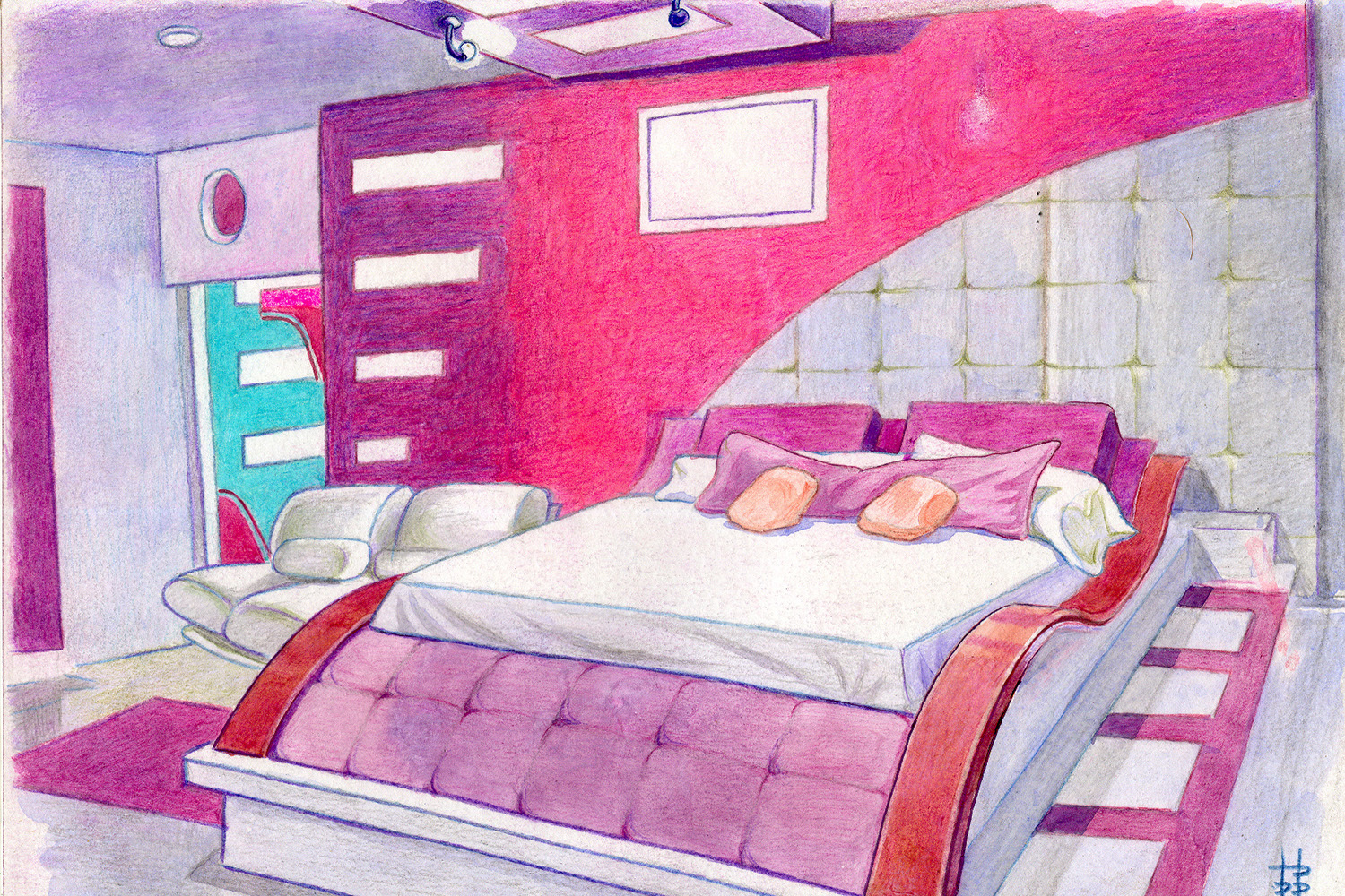 Интерьер тут как зеркало, все символично: это и желание расслабиться после постоянного напряжения, и некая интровертность характера, и аллегория текучести времени, которое нам отведено.