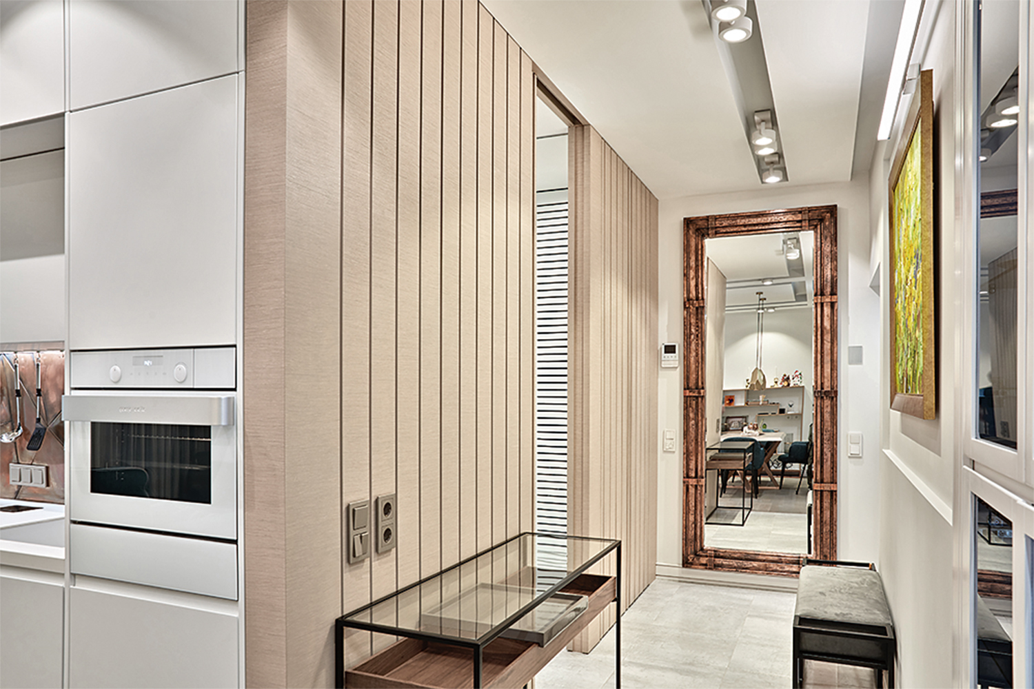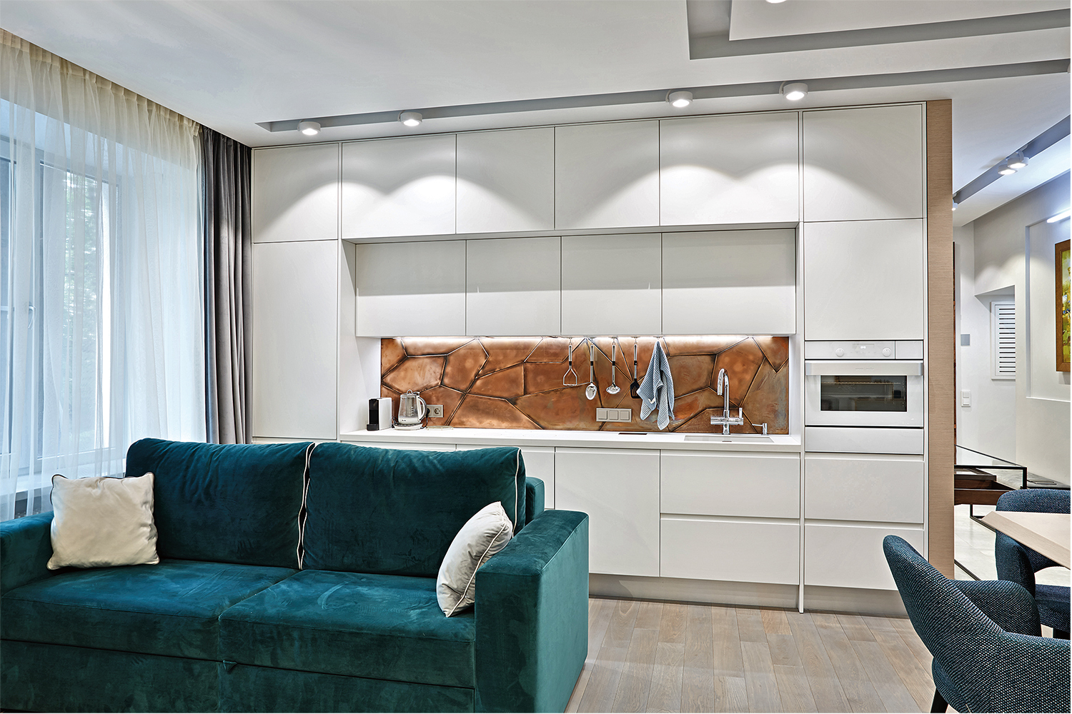 Также Денис проектирует мебель, куда включает медные элементы: создает новые формы колонн, обрамления камина, кухонные раковины и фартуки. Недавно изобрел цветную рельефную плитку, производящуюся методом травления, из которой выполняются декоративные панно. И да, теперь в мастерской ему помогает уже его отец, у которого когда-то он сам начинал в бригаде.
