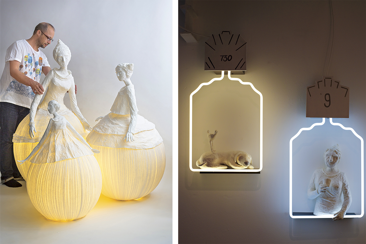 Еще с 2008 года Papier a Etres участвует в Maison & Objet, выставке дизайна и предметов для дома, которая два раза в год проходит в Париже. «Мы не привозим на выставку все, что у нас есть, каждый раз показываем новинки и делаем для них что-то вроде витрины. Нам, кстати, очень нравится работать над витринами магазинов, так как в них мы можем создать наш собственный мир, – говорит Софи. – У каждой коллекции своя идея. Все начинается с эскиза, затем мы думаем над тем, как будет выглядеть рисунок в объеме. Иногда на бумаге все выглядит нормально, а потом Фредерик говорит: «Нет, это не будет работать». Он более прагматичен. У нас много ограничений, мы ведь отправляем скульптуры в галереи и частным покупателям в разные точки мира».