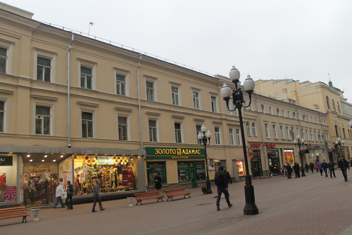 С разу за зданием ресторана «Прага» стоит скромный трёхэтажный дом. В недалёком прошлом в нём располагались магазины «Искусство» и «Плакат», которые часто и с удовольствием вспоминают москвичи.