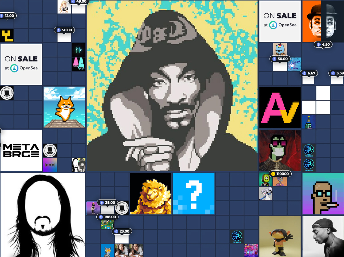 В декабре 2021 года игровая метавселенная The Sandbox выставила на продажу 189 виртуальных земельных участков (причем они делились на обычные и элитные) и три виллы по соседству с рэпером Снуп Доггом. Музыкант активно развивает собственный Snoopverse и NFT-лейбл.
