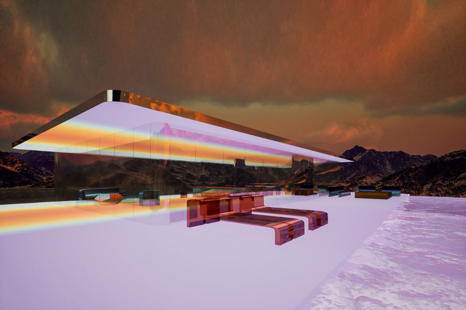 Дом на Марсе воплотил близкую художнице философию медитативного дизайна. Максимальный простор, стеклянные стены и вид на горы, пол и потолок, меняющие цвет. Художница предполагает, что виртуальный дом можно будет накладывать на реальный мир при помощи технологий дополненной реальности.