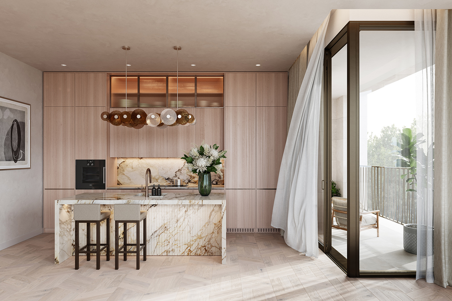 Резиденции предлагаются с полной отделкой и кухнями. При создании интерьеров дизайнеры британского архитектурного бюро 1508 London, специализирующегося на оформлении пятизвездочных отелей, а также вилл и яхт по всему миру, вдохновлялись темой балета, и в частности талантом примы Большого театра Ольги Лепешинской. Балетная тема считывается в обилии света, в летящих гармоничных формах, в выверенности пропорций интерьерного декора.
