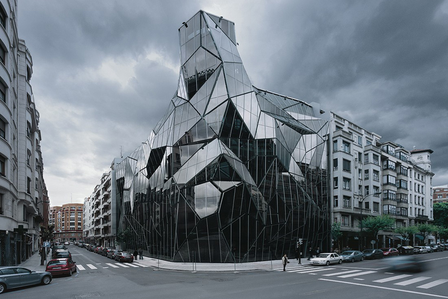 Особенность здания в том, что оно было спроектировано до появления технологий автоматизированного моделирования строений, то есть фактически является образцом графического искусства. Многогранник облицован панелями из нержавеющей стали, которые ярко блестят на закате и рассвете.