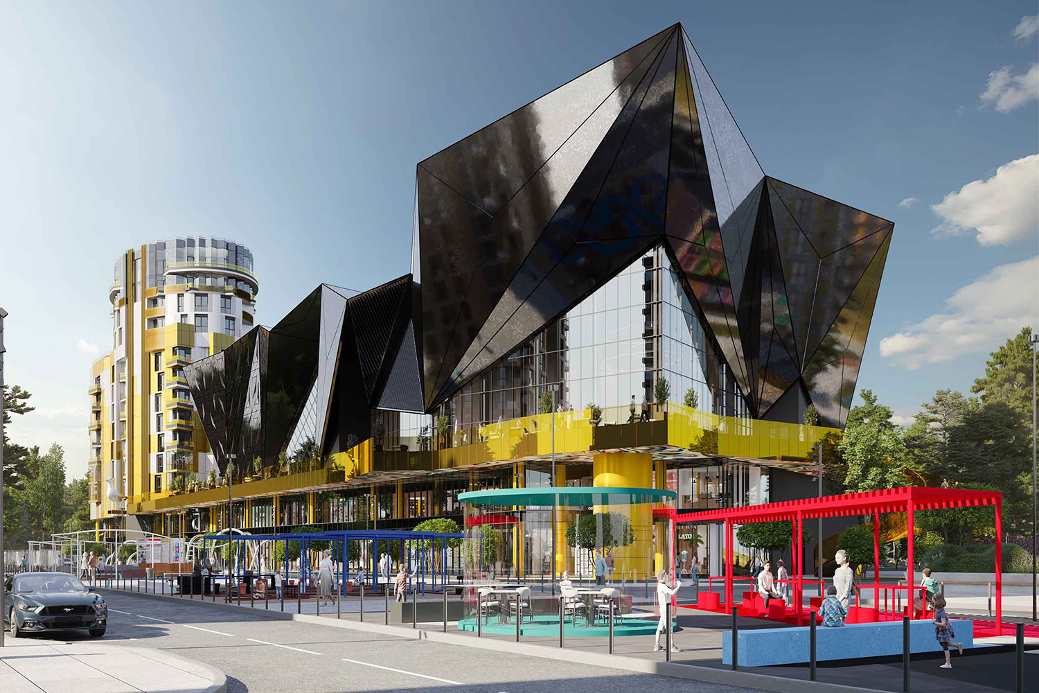 Многофункциональное здание, исполненное в форме кристалла цвета обсидиана, стало архитектурной доминантой нового авторского ЖК RDD в Новой Москве. Вдохновленный работами архитектора Вольфа Приска, российский архитектор Станислав Кулиш спроектировал купол общей площадью 7,5 тыс. кв. м, который состоит из более чем 30 000 элементов и 52 секторов, соединенных между собой.