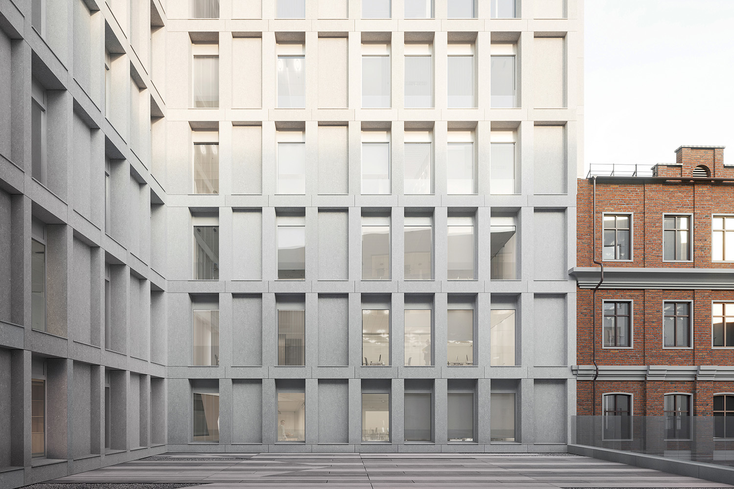 Здание Г-образной формы будет соединяться с существующим амбулаторным корпусом переходом на уровне пятого этажа. На первом этаже расположатся общественная, служебная и лечебно-диагностическая зоны с кабинетами для совещаний, на втором и восьмом этажах – хирургическое отделение с операционными и специализированными помещениями.