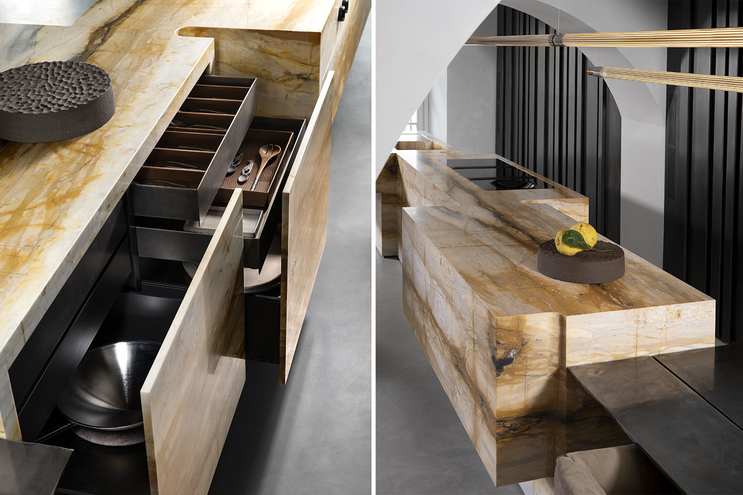 По словам дизайнера, каждый изгиб и контур кухни Opera были тщательно «вылеплены» с максимальным вниманием к деталям, чтобы достичь гармоничного сочетания формы и функции.
