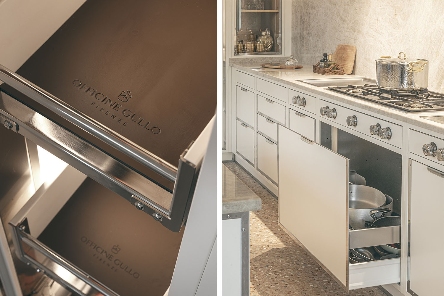 «Эстетика этой кухни напоминает о профессиональных кухнях и отдает дань уважения богатым традициям флорентийской металлообработки. Матово-белые поверхности в сочетании с металлическими элементами создают светлую и изысканную обстановку. Кухня была задумана как сердце резиденции, место для проведения праздничных мероприятий. Нашей задачей было сохранить историческую суть виллы, обогатив ее особенными утонченными инновационными элементами, – рассказал архитектор Barberini & Gunnell Франческо Барберини. – Компания Officine Gullo сумела точно воплотить суть этого проекта, создав кухню, которая прославляет флорентийское ремесленное мастерство и итальянский дизайн».