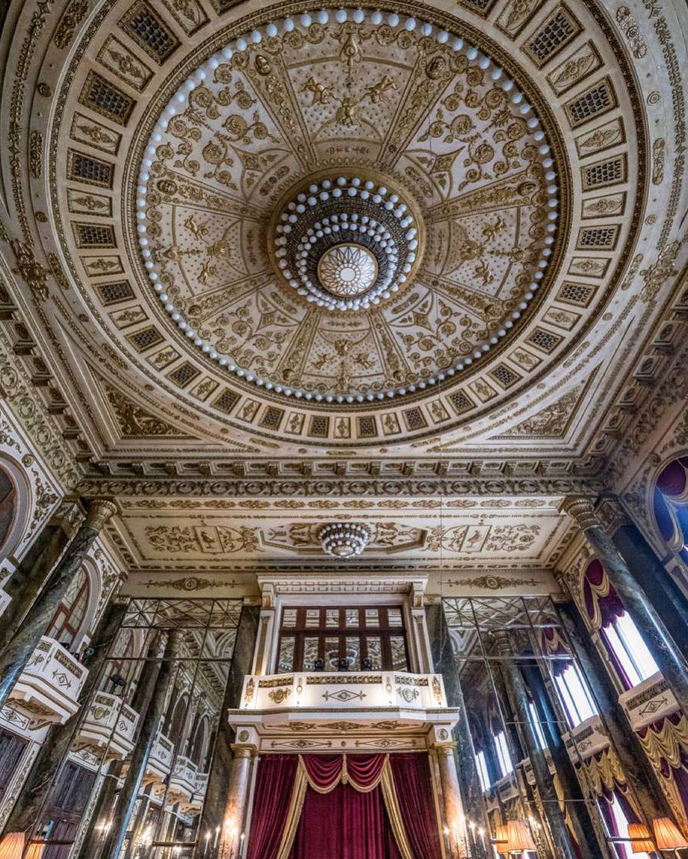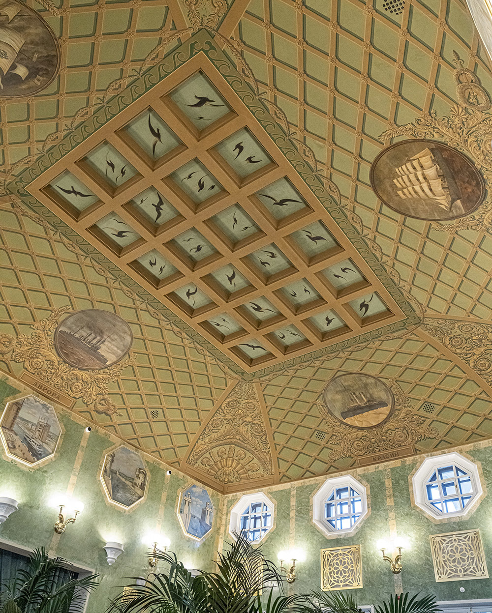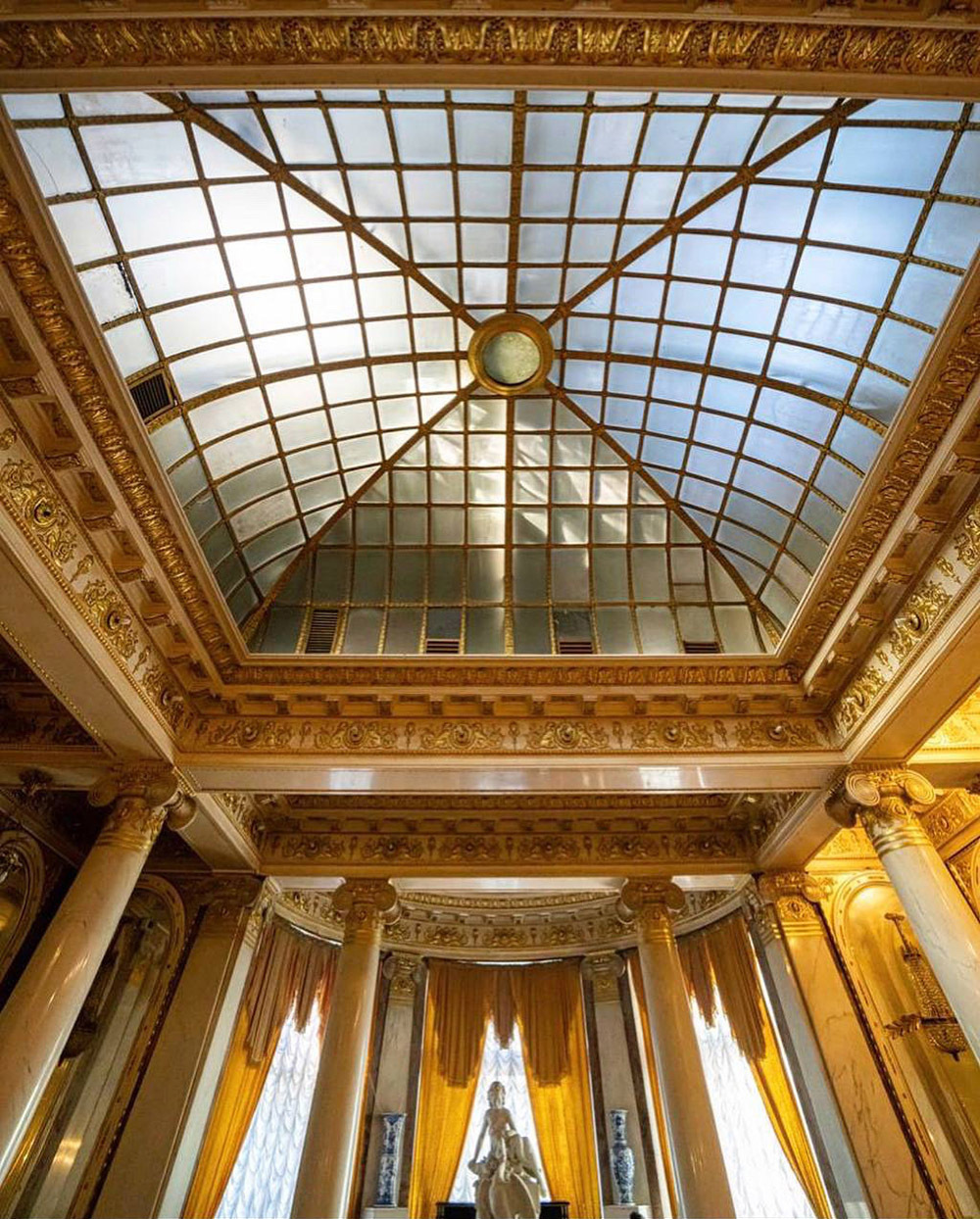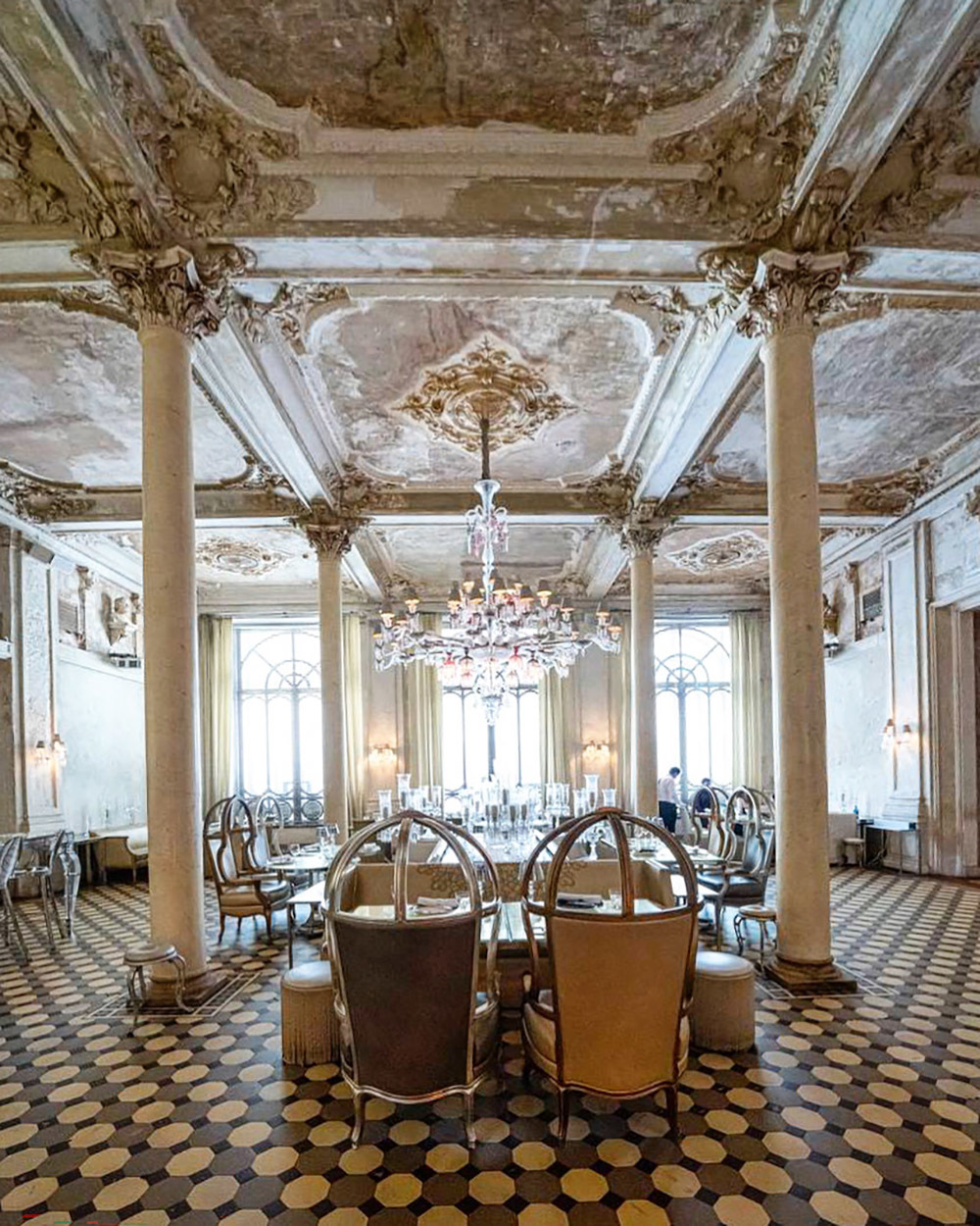 Ресторан располагается в особняке Святополк-Четвертинского, который построен в 1889 году по проекту архитектора П.С. Бойцова. Особняк на Поварской напоминает английский замок и построен он в стиле эклектика с элементами неоренессанса, необарокко и неоготики. Внутри почти все помещения изысканно отделаны деревом. Деревянная отделка и мебель в особняке были заказаны на мебельной фабрике Павла Шмита. На лестнице на резных деревянных колоннах сохранились резные лики – бородатого мужчины и девушки. Считается, что это изображения древесных божеств, дриад. Особняк чудом не был разграблен, а с 1932 года передан Союзу писателей.