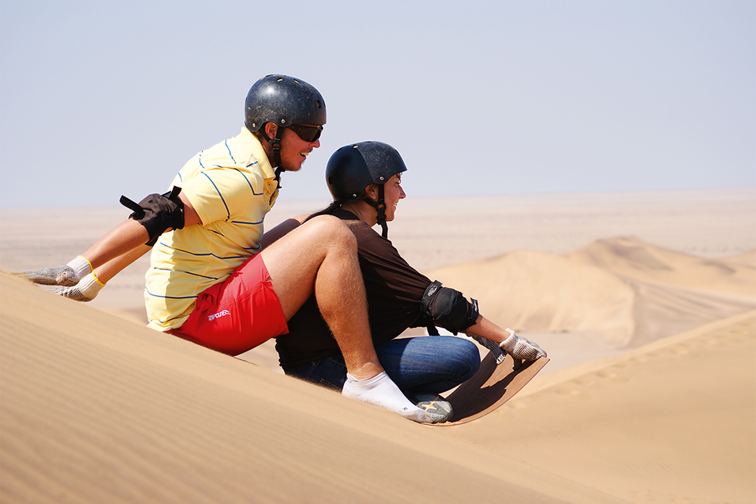 Тем не менее на песчаном склоне можно сделать все то же, что и на снежном – ехать длинными дугами или короткими поворотами, пройти слаломную трассу, прыгать с трамплинов и так далее. В качестве песколыж чаще всего используют самые обыкновенные лыжи. Предварительно их полируют, покрывают специальным воском и ставят облегченные крепления – как ни странно, от езды по барханам больше всего страдают именно они, а не скользячка. Попробовать скатиться вниз на песочной доске – на ногах или на чем получится – предлагают в любой пустыне мира, но если вам хотелось бы заняться сендскиингом или сендбордингом всерьез, то вот вам список самых крутых «песочниц» планеты.