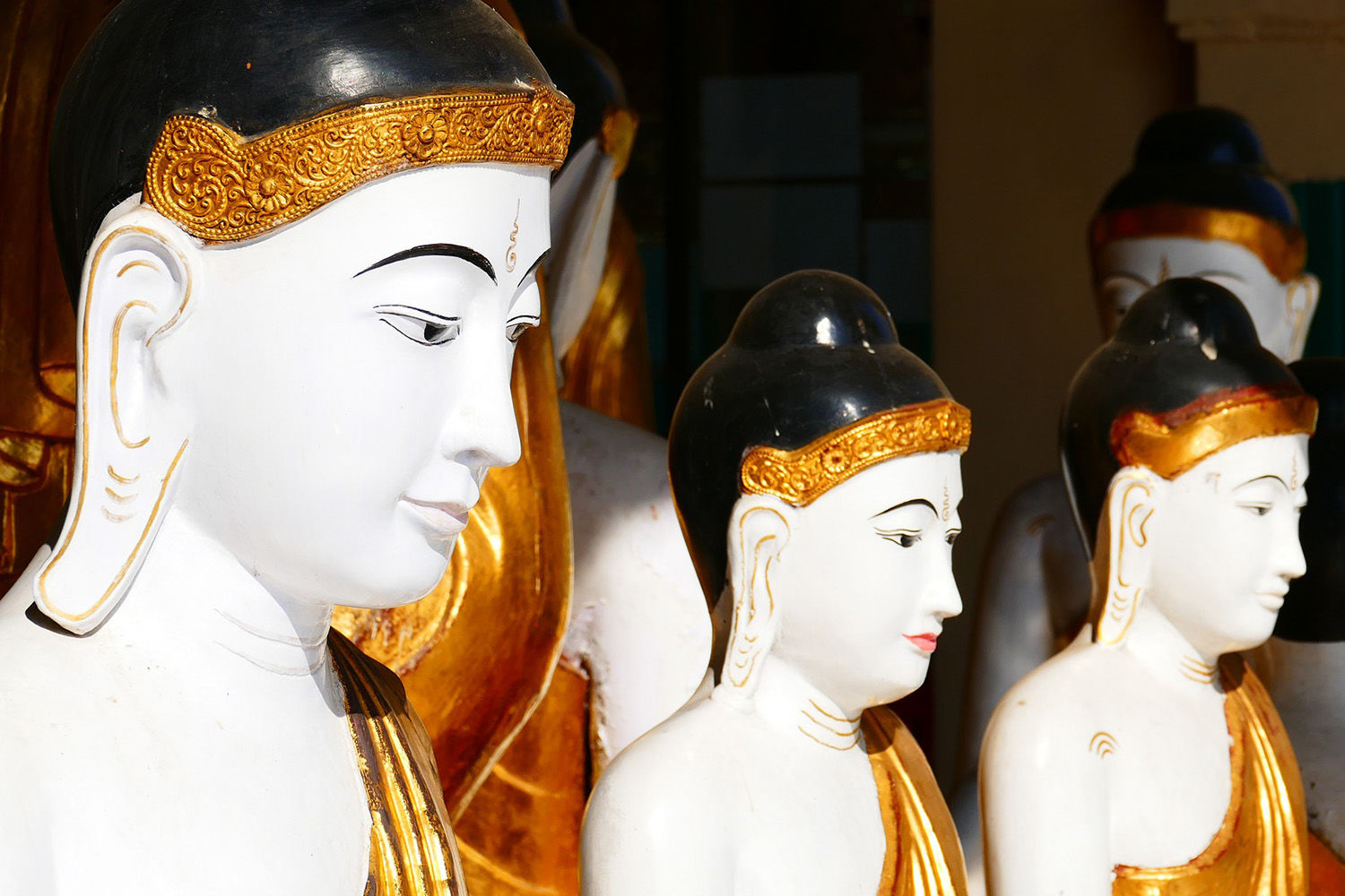 Мьянманский буддизм принадлежит к школе Тхеравады (учения старейшин), которая, в отличие от маханских школ, распространенных в Китае, Корее и Японии, признает в качестве коренных тексты Палийского канона, записанного 2100 лет назад на пальмовых листьях. Буддистами себя считают более 90% населения Мьянмы, при этом около полумиллиона мужчин являются бхикку, или монахами (слово означает «тот, кто живет на подаяние»). Монашество не обязательно подразумевает под собой пожизненное пребывание в этом статусе: большинство местных мужчин сочтут за честь побыть в оранжевой рясе хотя бы несколько месяцев в жизни. Отношение к монахам в стране трепетное: подать еду или одеяние им считается великим благом.