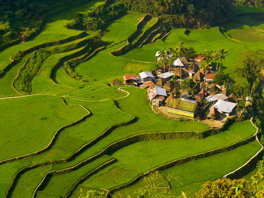 Рисовые террасы в Банауэ, покрывшие филиппинские Кордильеры, - одна из самых знаменитых достопримечательностей на Филиппинах. По мнению ученых, в отдаленных районах филиппинских Кордильеров склоны покрыты рисом уже 2000 лет. Рисовые террасы протянулись на 20 тыс. квадратных километров, заняв 7% суши Филиппинского архипелага. Это чудо природы можно увидеть в провинциях Северного Лусона в Калинга-Апаяо, Абра, Бенгет и Ифугао. Большинство филиппинцев считают рисовые террасы главным национальным символом.