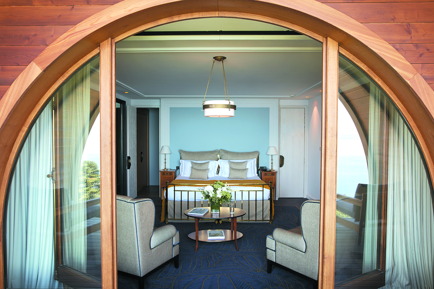 О тель Royal, названный в честь короля Великобритании Эдуарда VII, был открыт 6 июня 1909 года по инициативе компании по производству минеральной воды Evian. Монарху не суждено было отдохнуть в этих стенах (Эдуард VII скончался год спустя) однако отель оказался достойным своего благородного названия. С первых дней Royal был признан одним из самых красивых отелей в мире. Возведенный по проекту архитектора Жана-Альберта Эбрара, он напоминает своими очертаниями огромный белый лайнер, интерьеры которого сочетают в себе стили арт-нуво и арт-деко, а сводчатые потолки и ротонды расписаны фресками.