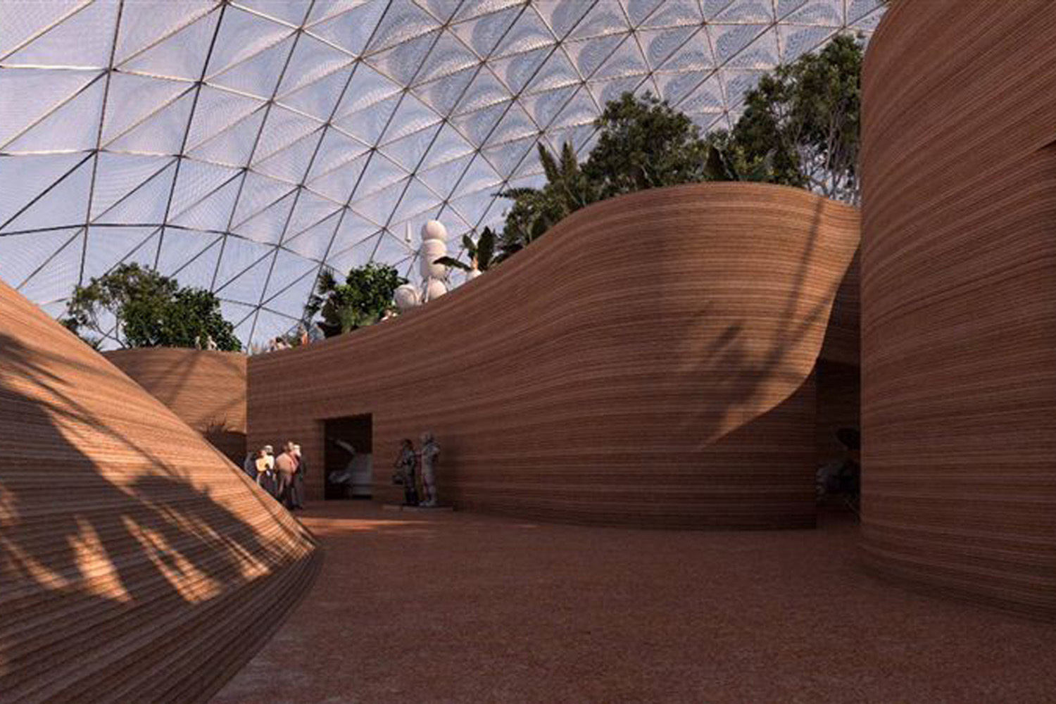 В 2017 году Объединенные Арабские Эмираты объявили о намерении колонизировать Марс в течение следующих 100 лет. Но, возможно, это произойдет и раньше: архитекторы из Bjarke Ingels Group уже представили, как может выглядеть марсианский город – и его проектируют в пустыне за пределами Дубая на площади 30 футбольных полей. Ориентировочная цена проекта – $135 млн. Чтобы поддерживать комфортную температуру и пригодное для жизни человека давление воздуха, марсианский город согласно проекту будет состоять из так называемых биодомов, каждый из которых покрыт прозрачной полиэтиленовой мембраной. Кислород планируется получать из воды путем подачи электричества к подземному льду. Город будет снабжаться энергией и обогреваться за счет солнечной энергии, а разреженная атмосфера может помочь куполам поддерживать стабильную температуру: теплопередача будет очень низкой, это означает, что воздух внутри куполов не будет охлаждаться так быстро, как на Земле. Низкая гравитация в свою очередь позволит делать более тонкие и высокие колонны и более длинные пролеты конструкций. Окна или секции куполов планируется заполнять водой – она задержит внешние излучения.